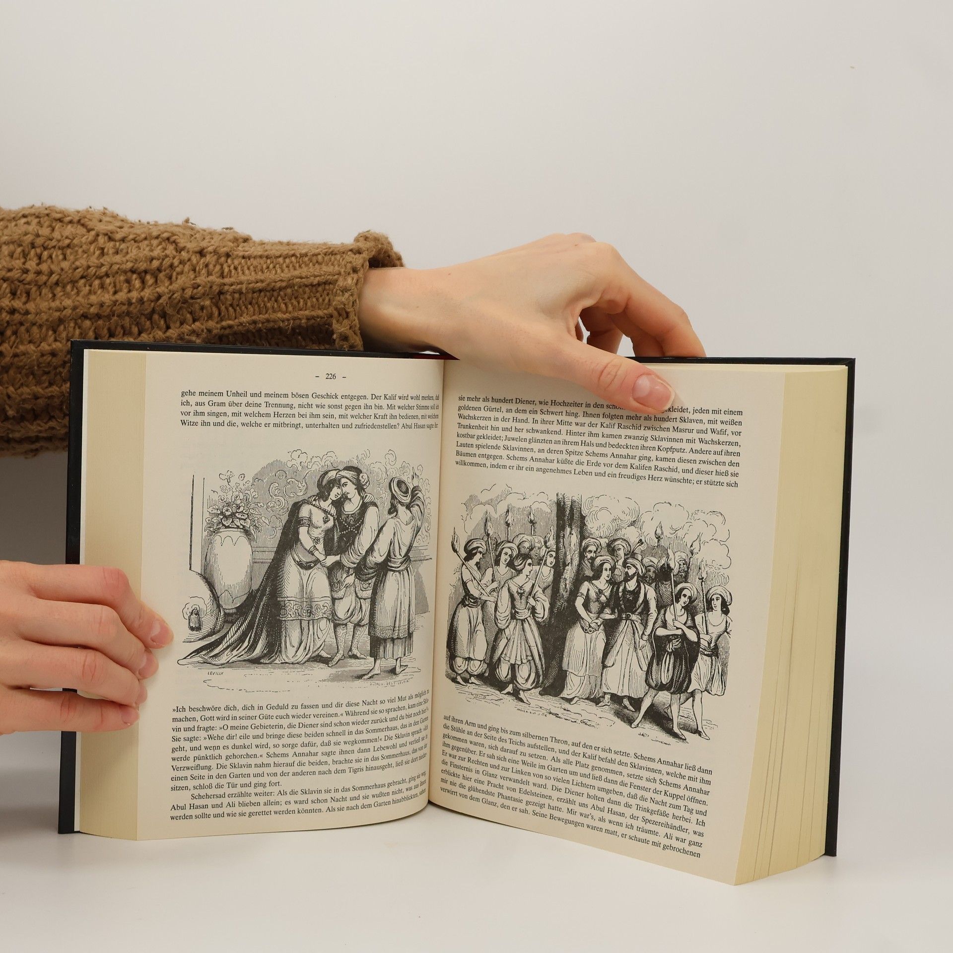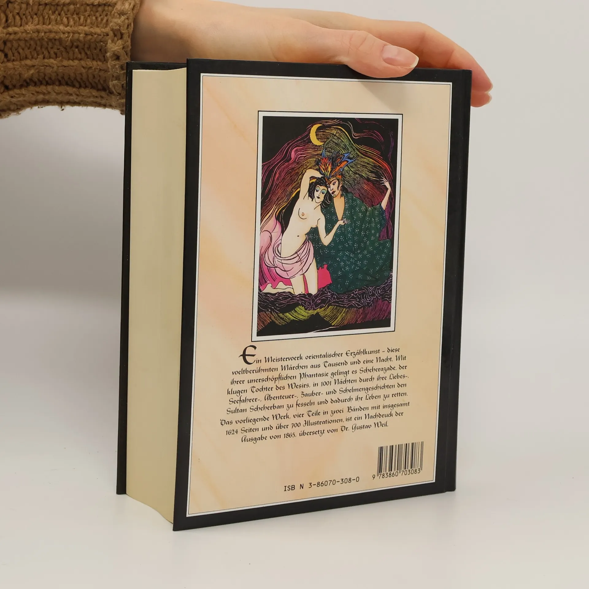 Die vorliegende Ausgabe bringt neben über 700 Illustrationen die vollständige, werkgetreue und erste deutsche Übersetzung aus arabischen Originaltexten von dem Orientalisten Gustav Weil (1808-1889). Die bekannten morgenländischen Erzählungen über Aladdin und die Wunderlampe, Ali Baba und die vierzig Räuber und Sindbad, dem Seefahrer, eingebettet in die Rahmengeschichte um den eifersüchtigen König Schehrijâr, der eine Frau nach der anderen direkt nach der Hochzeitsnacht ermordet und erst von der klugen Schehrezâd überlistet wird, begeistern seit eh und je Jung und Alt.