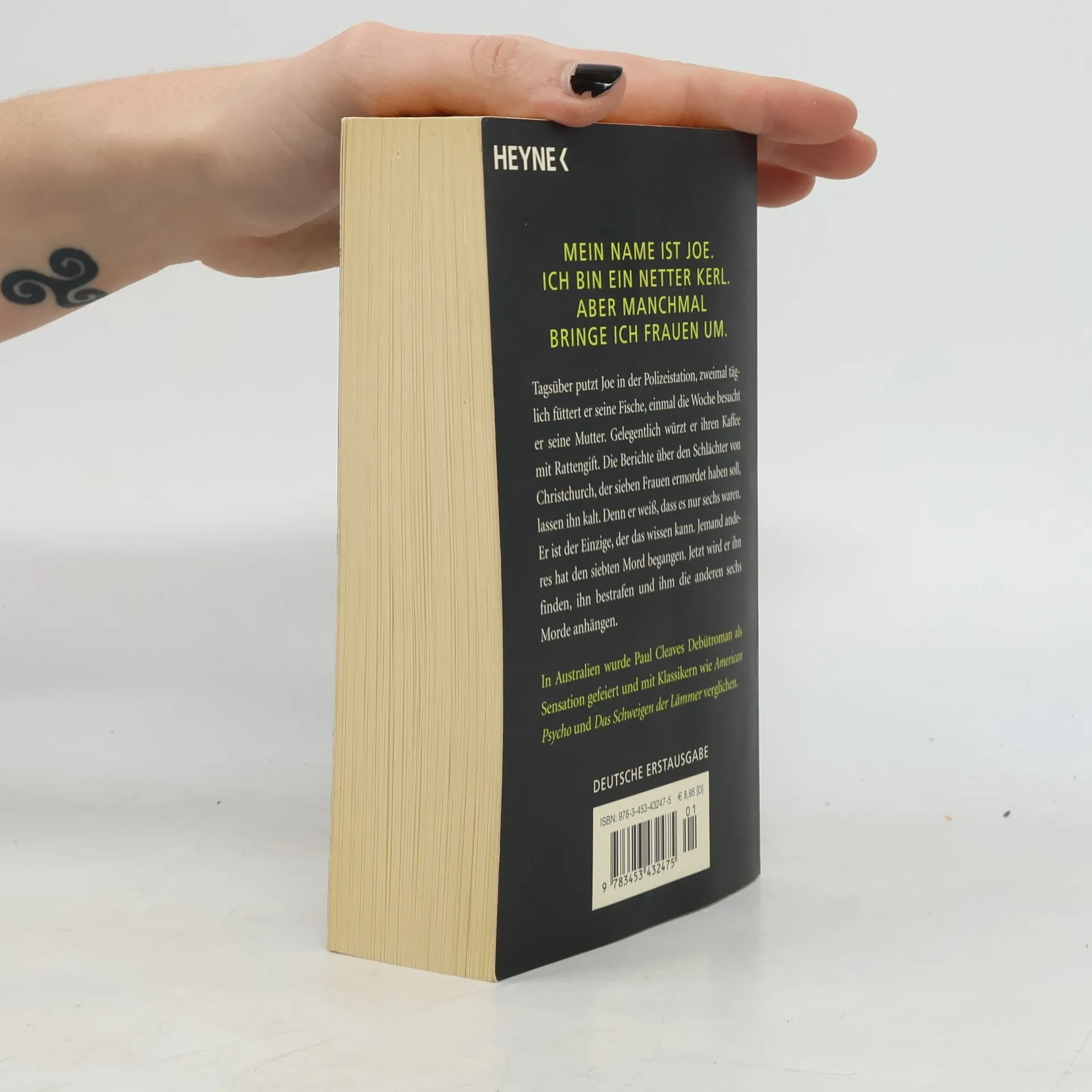 Mein Name ist Joe. Ich bin ein netter Kerl. Aber manchmal bringe ich Frauen um. Joe hat sein Leben scheinbar fest im Griff - tagsüber jobbt er als Putzmann bei der Polizei, abends geht er anderen Tätigkeiten nach. Er denkt daran, seine Fische zweimal täglich zu füttern und seine Mutter mindestens einmal pro Woche zu besuchen, obwohl er ihren Kaffee ab und zu mit Rattengift verfeinert. Er stört sich kaum an den Nachrichten über den Schlächter von Christchurch, der - so wird behauptet - sieben Frauen umgebracht hat. Joe weiß, dass der Schlächter nur sechs getötet hat. Er weiß es ganz einfach. Und Joe wird diesen Nachahmer finden; er wird ihn für die eine Tat bestrafen und ihm die anderen sechs Morde anhängen. Ein perfekter Plan, denn er weiß bereits, dass er die Polizei überlisten kann. Das Einzige, was noch getan werden muss, ist, sich um all die Frauen zu kümmern, die nicht aufhören, ihm im Weg zu stehen.