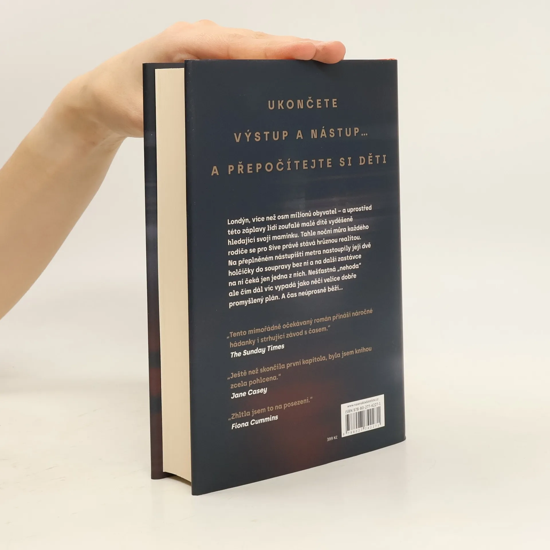 Sive stojí na nacpaném nástupišti metra v Londýně. Když metro přijede, její dvě holčičky, jedna šestiletá a druhá dvouletá, naskočí do vagonu před ní. Protože se Sive zrovna dívá na telefon, aby zjistila, kdo jí volá, nestačí nastoupit za nimi a dveře se zavřou. Souprava odjíždí a Sive zůstane stát na nástupišti. Než se dostane na další zastávku, přesvědčuje sebe samu, že všechno bude v pořádku. Brzy však začne panikařit, protože na ni na nástupišti nečekají dvě děti, nýbrž jen jedno. Ztratila se její druhá dcera? Unesl ji nějaký neznámý kolemjdoucí? Nebo je viník blíž, než si myslí? Nikdo neříká pravdu, všichni lžou a čím déle hledání trvá, tím těžší bude dceru najít… Kniha je inspirována zážitkem z autorčina vlastního života. Když jí bylo dvanáct let, s jednou s jejích tří sester zůstala zavřená v odjíždějícím metru, zatímco rodiče a další dvě sestry zůstali na nástupišti.