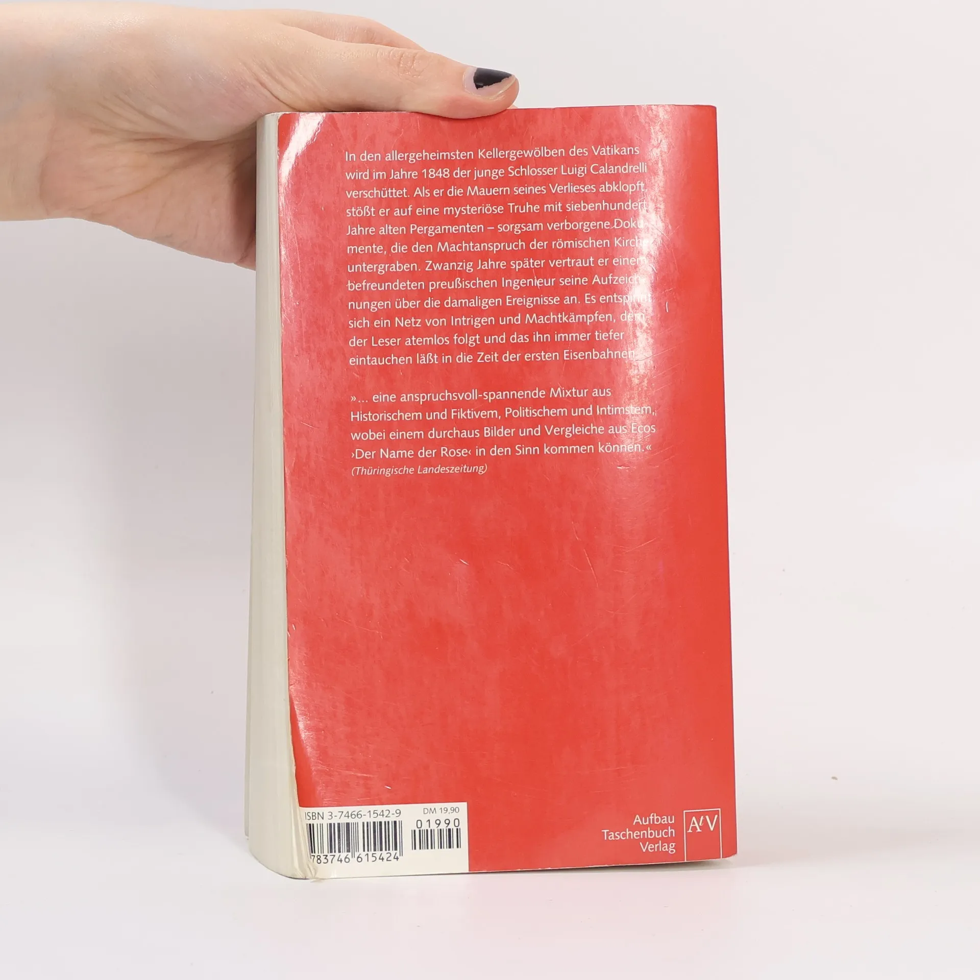Ein historischer Thriller der Extraklasse Im Kellerlabyrinth des Vatikans wird im Jahre 1848 ein junger Schlosser verschüttet. Bei seinem Befreiungsversuch stößt er auf eine mysteriöse Truhe mit uralten Pergamenten, die den Machtanspruch der römischen Kirche untergraben. Als er zwanzig Jahre später einem Ingenieur seine Aufzeichnungen anvertraut, bringt er ihn damit in Lebensgefahr. „… eine anspruchsvoll-spannende Mixtur aus Historischem und Fiktivem, Politischem und Intimstem, wobei einem durchaus Bilder und Vergleiche aus Ecos ‚Der Name der Rose’ in den Sinn kommen können.“ Thüringische Landeszeitung