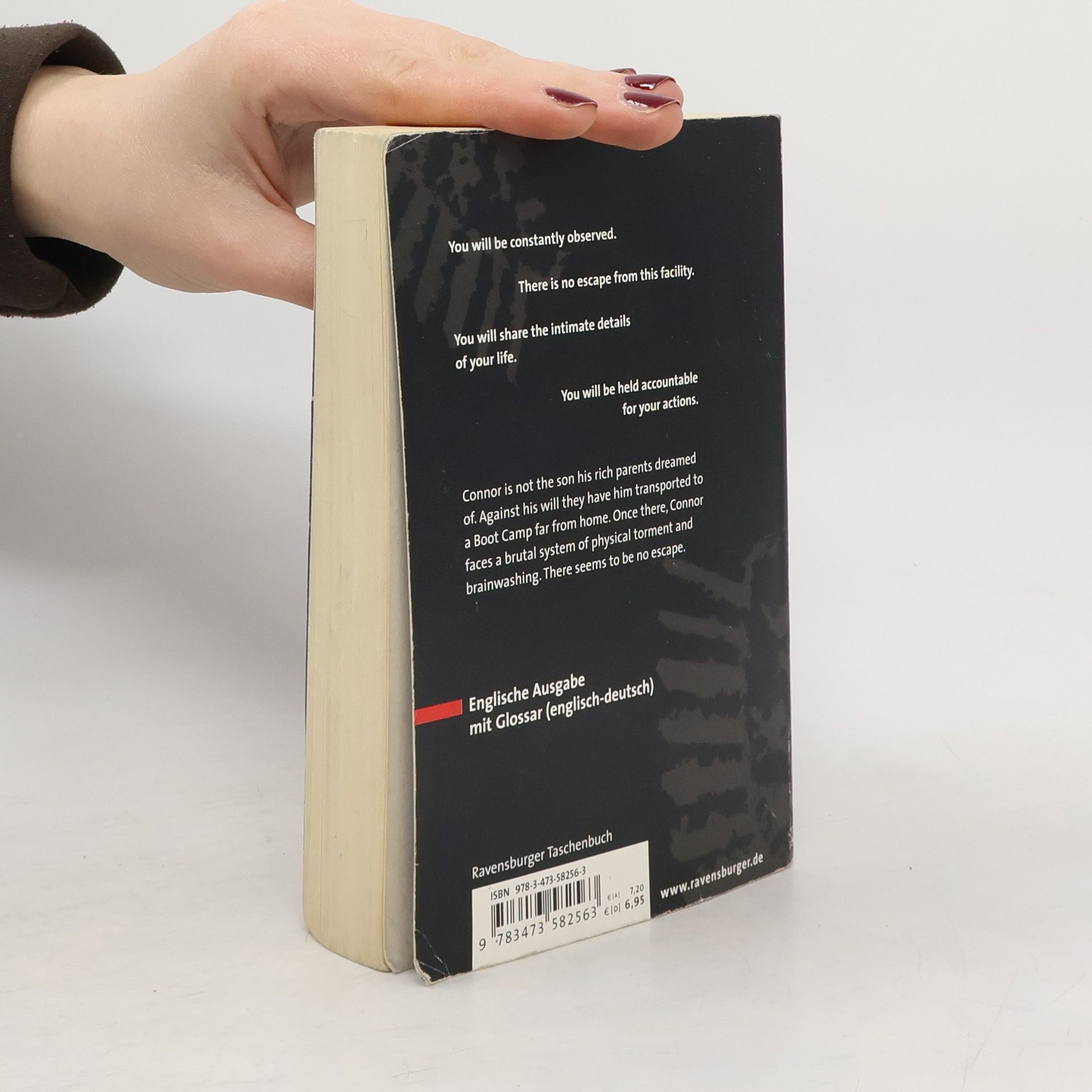 You will be constantly observed. There is no escape from this facility. You will share the intimate details of your life. You will be held accountable for your actions. Connor is not the son his rich parents dreamed of. Against his will they have him transported to a Boot Camp far from home. Once there, Connor faces a brutal system of physical torment and brain-washing. There seems to be no escape. Wichtig für den Schulunterricht: Seitenzählung unverändert! Weitere Romane von Morton Rhue: Die Welle Asphalt Tribe
