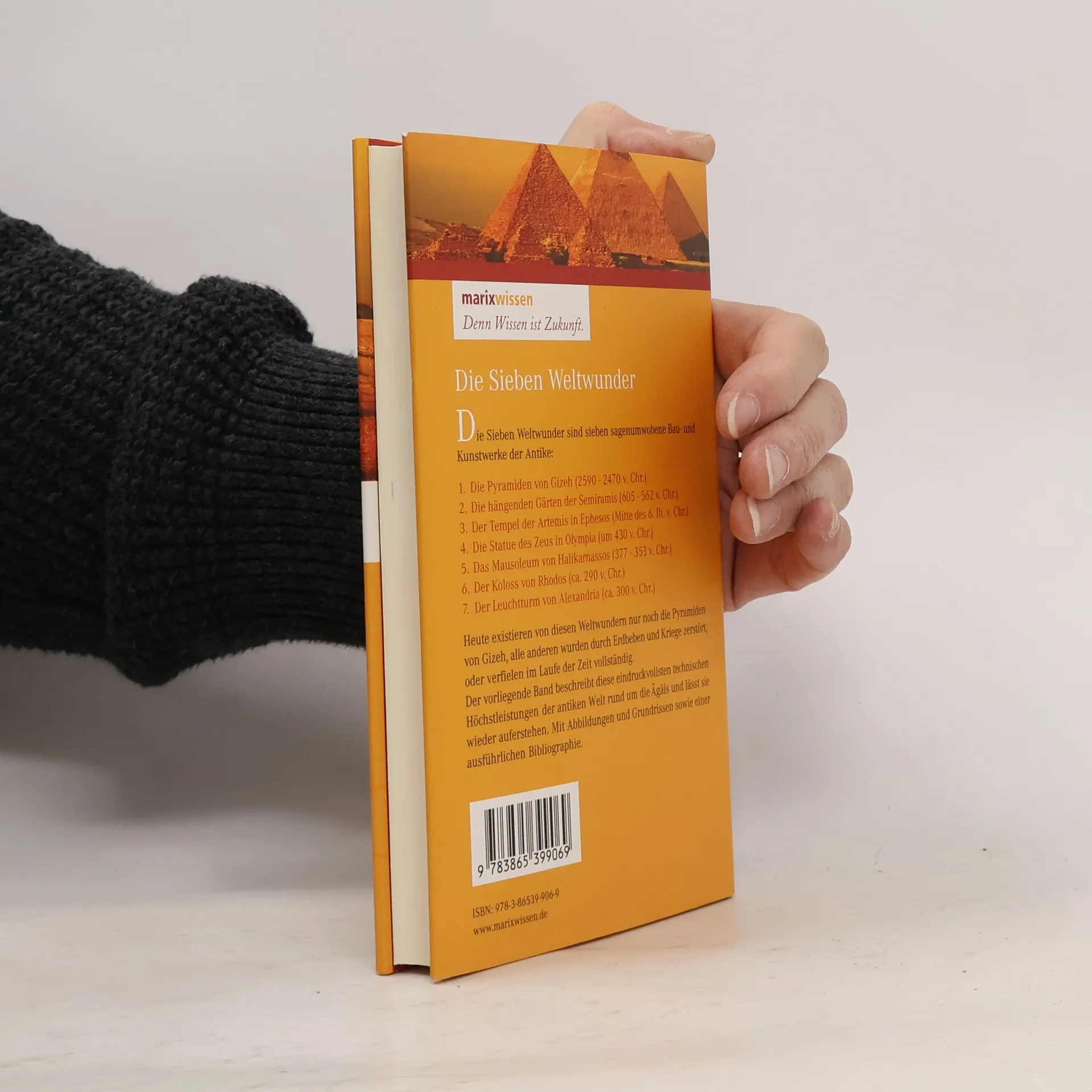 Die Sieben Weltwunder sind sieben sagenumwobene Bau- und Kunstwerke der Antike. Das älteste bekannte Zeugnis darüber legte der griechische Dichter Antipatros von Sidon (2. Jhd. V. Chr.) ab. Seitdem zählt man dazu: 1. Die Pyramiden von Gizeh (2590 – 2470 v. Chr.) 2. Die hängenden Gärten der Semiramis (605 – 562 v. Chr.) 3. Der Tempel der Artemis in Ephesos (Mitte des 6. Jahrhunderts v. Chr.) 4. Die Goldelfenbein-Statue des Zeus in Olympia (um 430 v. Chr.) 5. Das Mausoleum von Halikarnassos (377 – 353 v. Chr.) 6. Der Koloss von Rhodos (ca. 290 v. Chr.) 7. Der Leuchtturm von Alexandria (ca. 300 v. Chr.) Heute existieren von diesen Weltwundern nur noch die Pyramiden von Gizeh – alle anderen wurden durch Erdbeben und Kriege zerstört, oder zerfielen im Laufe der Zeit vollständig. Die ursprünglich aufgelisteten Stadtmauern von Babylon wurden z. B. durch Gregor von Tours im 6. Jahrhundert aus der Liste entfernt, da sie zerstört waren, und durch den Leuchtturm von Alexandria ersetzt worden waren. Der vorliegende Band beschreibt diese eindrucksvollen technischen Höchstleistungen des damaligen Weltkunstbereiches rings um die Ägäis und lässt sie wieder auferstehen. Mit Abbildungen und Grundrissen, einem Register und Literaturhinweisen.