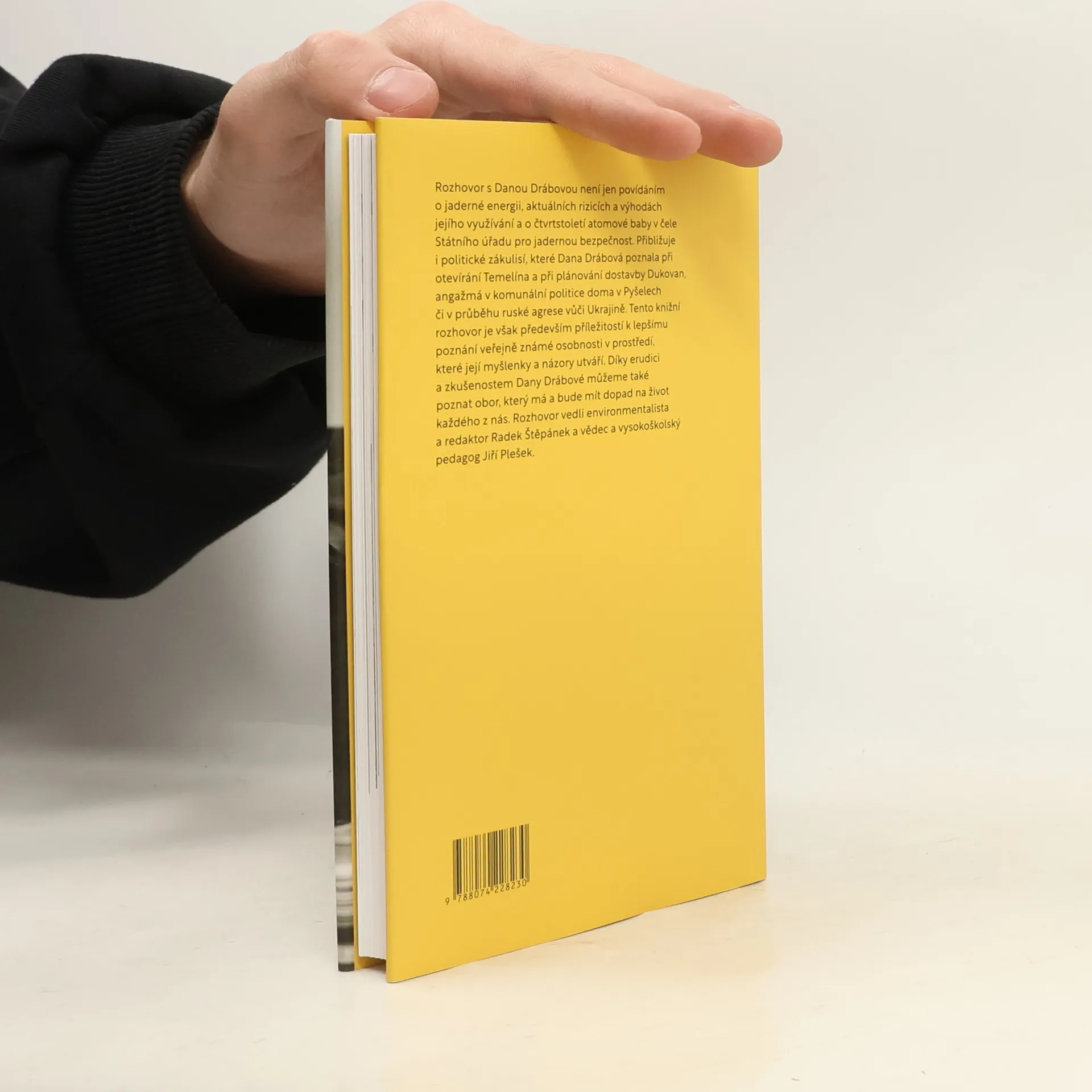 Rozhovor s Danou Drábovou není jen povídáním o jaderné energii, aktuálních rizicích a výhodách jejího využívání, o čtvrtstoletí Atomové baby v čele Státního úřadu pro jadernou bezpečnost. Přibližuje i politické zákulisí, které poznala při otevírání Temelína a plánech na dostavbu Dukovan, angažmá v komunální politice doma vPyšelích či ruskou agresi na Ukrajině a její dopady na obor jaderné bezpečnosti. Zejména je ale příležitostí k tomu, hlouběji poznat veřejně známou osobnost v jiných kontextech a v prostředí, které její osobnost a názory utváří, a jejím prostřednictvím neformálně poznat obor, který má a bude mít dopad na život každého z nás. Rozhovor vedli vědec a vysokoškolský pedagog Jiří Plešek a environmentalista a redaktor Radek Štěpánek.