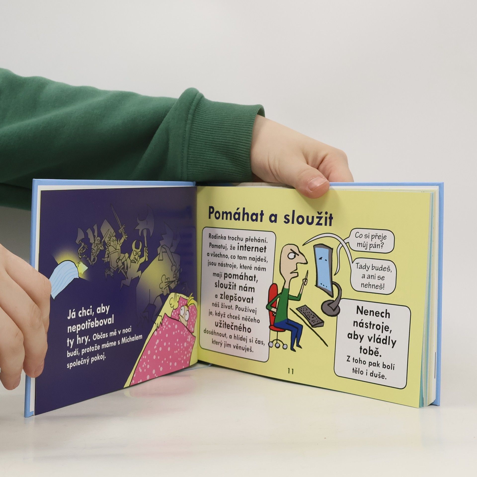 „Dvojkniha“ radí dětem s legrací v komiksu a dospělým podrobnějším textem: jak se v online světě pohybovat bezpečněji, zůstat zdraví a poradit si s problémy. Jde o volné pokračování bestselleru Hustej internet. S odbornou garancí Linky bezpečí. Dotýká se témat: *sociální sítě, výzvy a rady *vnímání sebe, kult krásy a kyberšikana *roztříštěná pozornost a závislosti *emoce, šíření vzteku a zkažený obsah *zkreslené informace a kritické myšlení *umělá inteligence, učení i obavy *odolnost, cvičení a tělo *stres, spánek a duševní zdraví.