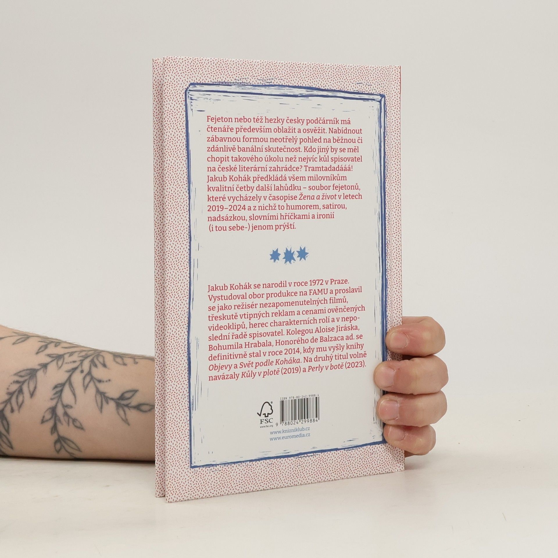 Fejeton nebo též hezky česky podčárník má čtenáře především oblažit a osvěžit. Nabídnout zábavnou formou neotřelý pohled na běžnou či zdánlivě banální skutečnost. Kdo jiný by se měl chopit takového úkolu než nejvíc kůl spisovatel na české literární zahrádce? Tramtadadááá! Jakub Kohák předkládá všem milovníkům kvalitní četby další lahůdku – soubor fejetonů, které vycházely v časopise Žena a život v letech 2019–2024 a z nichž to humorem, satirou, nadsázkou, slovními hříčkami a ironií (i tou sebe-) jenom prýští.