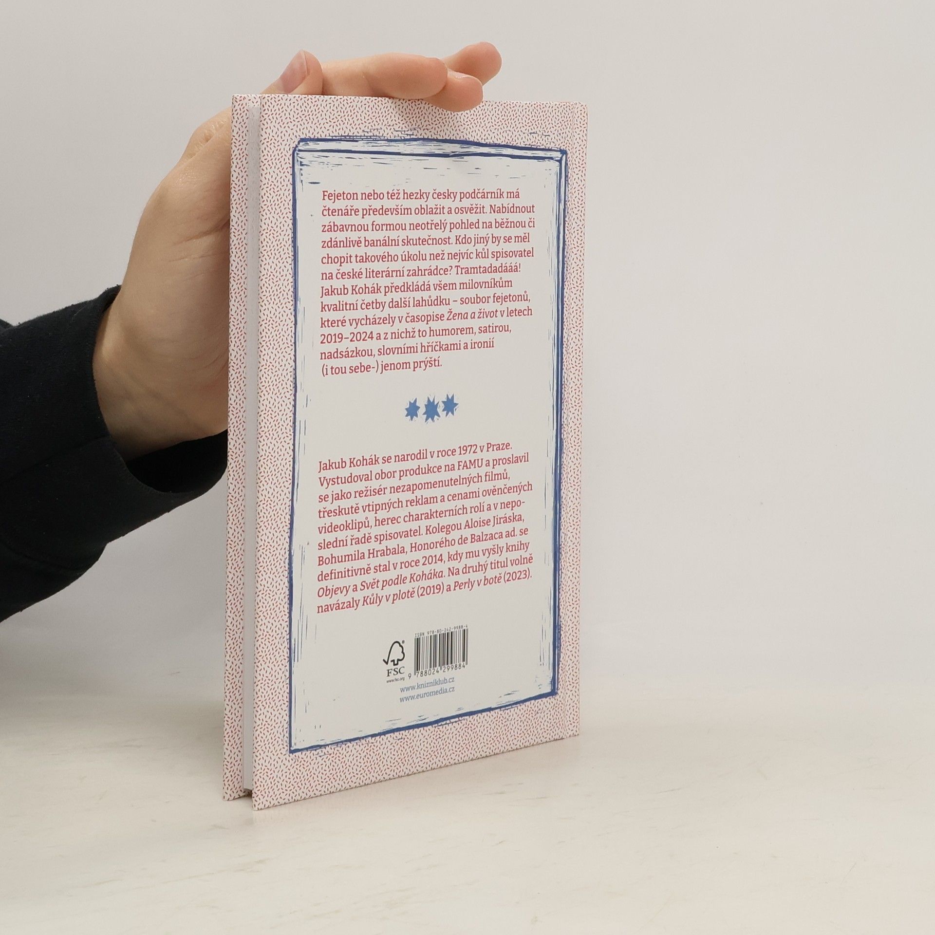Fejeton nebo též hezky česky podčárník má čtenáře především oblažit a osvěžit. Nabídnout zábavnou formou neotřelý pohled na běžnou či zdánlivě banální skutečnost. Kdo jiný by se měl chopit takového úkolu než nejvíc kůl spisovatel na české literární zahrádce? Tramtadadááá! Jakub Kohák předkládá všem milovníkům kvalitní četby další lahůdku – soubor fejetonů, které vycházely v časopise Žena a život v letech 2019–2024 a z nichž to humorem, satirou, nadsázkou, slovními hříčkami a ironií (i tou sebe-) jenom prýští.
