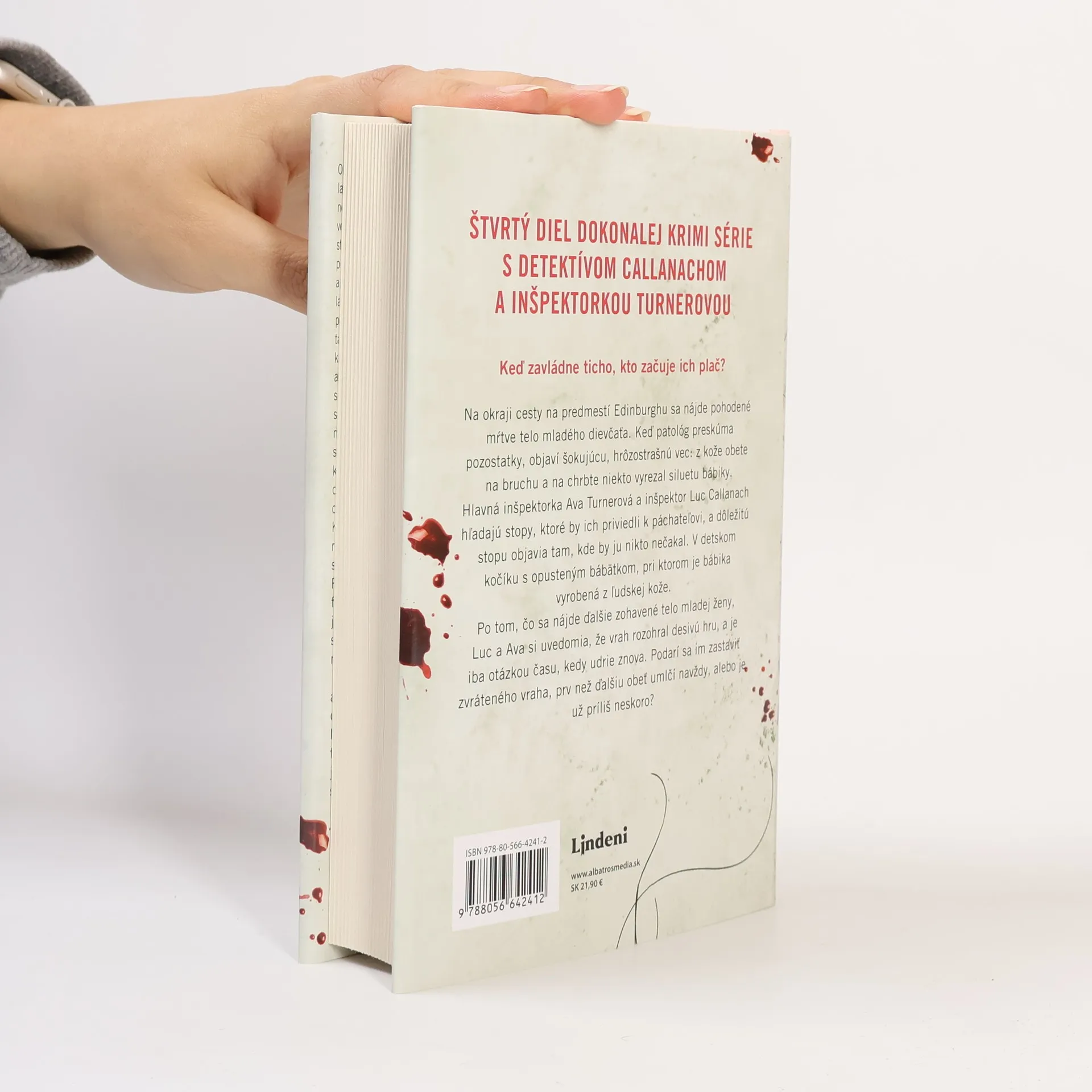 Štvrtý diel dokonalej krimi série s detektívom Callanachom a inšpektorkou Turnerovou Na okraji cesty na predmestí Edinburghu sa nájde pohodené mŕtve telo mladého dievčaťa. Keď patológ preskúma pozostatky, objaví šokujúcu, hrôzostrašnú vec: z kože obete na bruchu a na chrbte niekto vyrezal siluetu bábiky. Hlavná inšpektorka Ava Turnerová a inšpektor Luc Callanach hľadajú stopy, ktoré by ich priviedli k páchateľovi, a dôležitú stopu objavia tam, kde by ju nikto nečakal. V detskom kočíku s opusteným bábätkom, pri ktorom je bábika vyrobená z ľudskej kože. Po tom, čo sa nájde ďalšie zohavené telo mladej ženy, Luc a Ava si uvedomia, že vrah rozohral desivú hru, a je iba otázkou času, kedy udrie znova. Podarí sa im zastaviť zvráteného vraha, prv než ďalšiu obeť umlčí navždy, alebo je už príliš neskoro?
