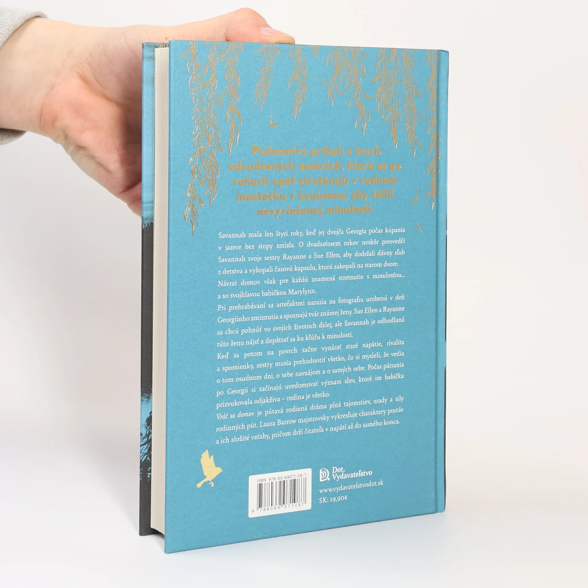 Tri sestry. Zmiznuté dvojča. Dávno pochované rodinné tajomstvá. Podmanivý príbeh o troch odcudzených sestrách, ktoré sa po rokoch opäť stretávajú v rodnom mestečku v Louisiane, aby čelili nevyriešenej minulosti. Savannah mala len štyri roky, keď jej dvojča Georgia počas kúpania v jazere bez stopy zmizla. O dvadsaťosem rokov neskôr presvedčí Savannah svoje sestry Rayanne a Sue Ellen, aby dodržali dávny sľub z detstva a vykopali časovú kapsulu, ktorú zakopali na starom dvore. Návrat domov však pre každú znamená stretnutie s minulosťou… a so svojhlavou babičkou Marylynn. Pri prehrabávaní sa artefaktmi narazia na fotografiu urobenú v deň Georgiinho zmiznutia a spoznajú tvár známej ženy. Sue Ellen a Rayanne sa chcú pohnúť vo svojich životoch ďalej, ale Savannah je odhodlaná túto ženu nájsť a dopátrať sa ku kľúču k minulosti. Keď sa potom na povrch začne vynárať staré napätie, rivalita a spomienky, sestry musia prehodnotiť všetko, čo si mysleli, že vedia o tom osudnom dni, o sebe navzájom a o samých sebe. Počas pátrania po Georgii si začínajú uvedomovať význam slov, ktoré im babička prízvukovala odjakživa – rodina je všetko. Vráť sa domov je pútavá rodinná dráma plná tajomstiev, zrady a sily rodinných pút. Laura Barrow majstrovsky vykresľuje charaktery postáv a ich zložité vzťahy, pričom drží čitateľa v napätí až do samého konca.