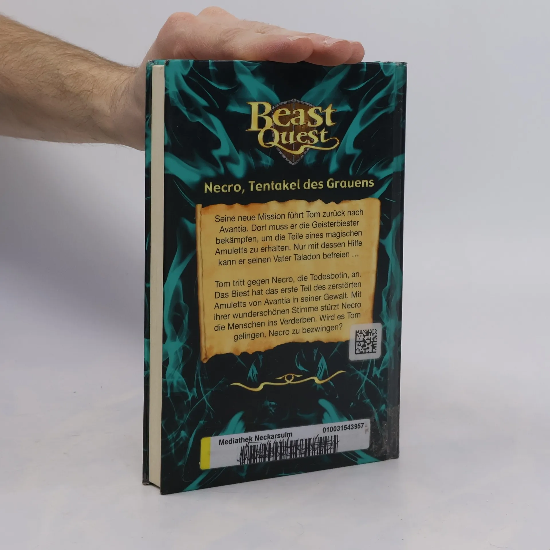Tom und Elenna haben in Gorgonia 6 Biester aus der Gewalt des bösen Magiers Malvel befreit. Auch Toms gefangener Vater Taladon entkam, steckt jedoch als Geist noch fest zwischen den Welten. Er hat in seinem letzten Kampf gegen die Geisterbiester im Verbotenen Land sein Schutzamulett verloren. Es zerbrach (s. "Sting, Wächter der Festung"). Erst wenn es wieder zusammengefügt ist, wird Taladon erlöst. Tom und Elenna sind bereit, mit dem Pferd Storm und dem zahmen Wolf Silver die Suche zu wagen. Das 1. Bruchstück müssen sie im Kampf gegen Necro erobern, die Todesbotin, die in wechselnder Gestalt erscheint, mal als schöne Frau, mal als Double von Elenna, dann als Monster mit grauenhaften Tentakeln. Sie tötet Menschen mit ihrer durchdringenden Stimme, kann selbst jedoch keinen Lärm ertragen. Schaurig, fast tödlich wäre für Tom und Elenna der Kampf in Necros Höhle geendet, hätten die beiden das Monster nicht mit dem schrillen Kratzen ihrer Waffen auf Stein bezwungen. - Wie zuvor: drastisches Schauerlesefutter zur Fortsetzung - für hartgesottene Jungen. Ab 8