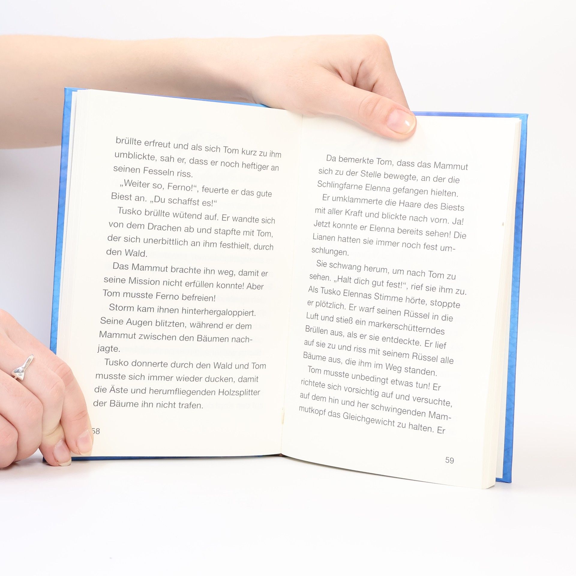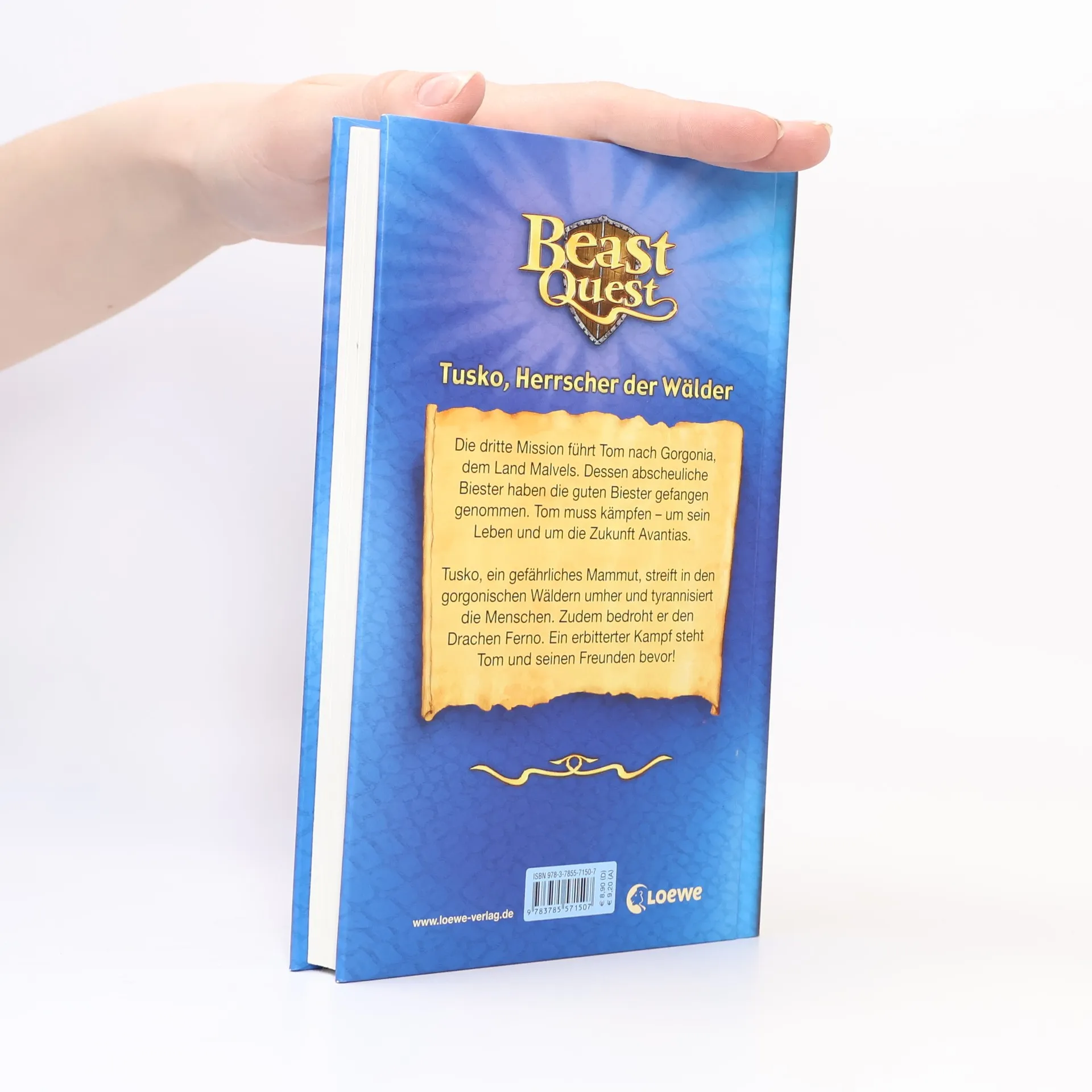 In ihrer 3. Mission im Auftrag des guten Magiers Aduro sind Tom und Elenna unterwegs in Gorgonia, dem Land des bösen Zauberers Malvel. Er hat Avantias gute Biester entführt, lässt sie von grausigen Monstern bewachen. 4 haben Tom und Elenna mit ihrem treuen Pferd Storm und dem zahmen Wolf Silver schon befreit (vgl. zuletzt "Kaymon, Höllenhund des Grauens"). Jetzt gilt es, den Drachen Ferno - Herr des Feuers zu finden, die Fesseln zu lösen. Sein Wächter ist Tusko, Herrscher der Wälder, ein gigantisches Mammut. Es verletzt Elenna, die von Schlingpflanzen gefesselt ist, mit seinem giftigen Stosszahn. Tom sucht Hilfe bei den Rebellen, die im Untergrund gegen Malvel stehen. Hart kämpfen sie gemeinsam, bezwingen Tusko. Ferno ist frei. Das Tor nach Avantia öffnet sich für ihn. Einige Rebellen folgen ihm. Toms Lohn ist ein bernsteinfarbener, neue Kraft spendender Juwel. - Dem Reihenkonzept folgend, ist auch die 17. Episode unverändert drastisch und als recht reisserisches Lesefutter für Jungen inszeniert. Mit dem Kampf gegen Sting endet die 3., doch nicht die letzte Mission. Ab 8