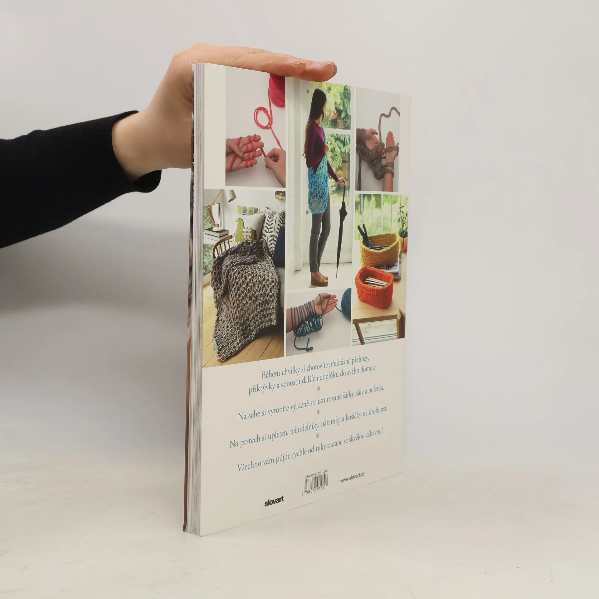 Slyšeli jste už o pletení na rukou nebo na prstech? Zapomeňte na jehlice a užívejte si výhody tohoto pletení, jimiž jsou jednoduchost a hlavně rychlost. Polštáře, přehozy, stínítko na lampu, prostírání nebo košíčky na oživení domova, výrazně strukturované šátky, šály, plédy, bolerka, náhrdelníky, náramky či brože. Autorka Laura Struttová vám předvede, jak zvládnout obvyklé vzory a techniky pouze rukama a prsty. Fotografie a návody vás krok za krokem provedou všemi dovednostmi od jednoduchého očka hladce až k perličkovému vzoru, naučíte se rozšiřovat i ujímat, uplést copánek a pracovat s více prameny najednou. Není divu, že pletení na rukou a prstech vzbuzuje takový zájem, když vám během hodinky či odpoledne umožní dosáhnout tak pozoruhodných výsledků.