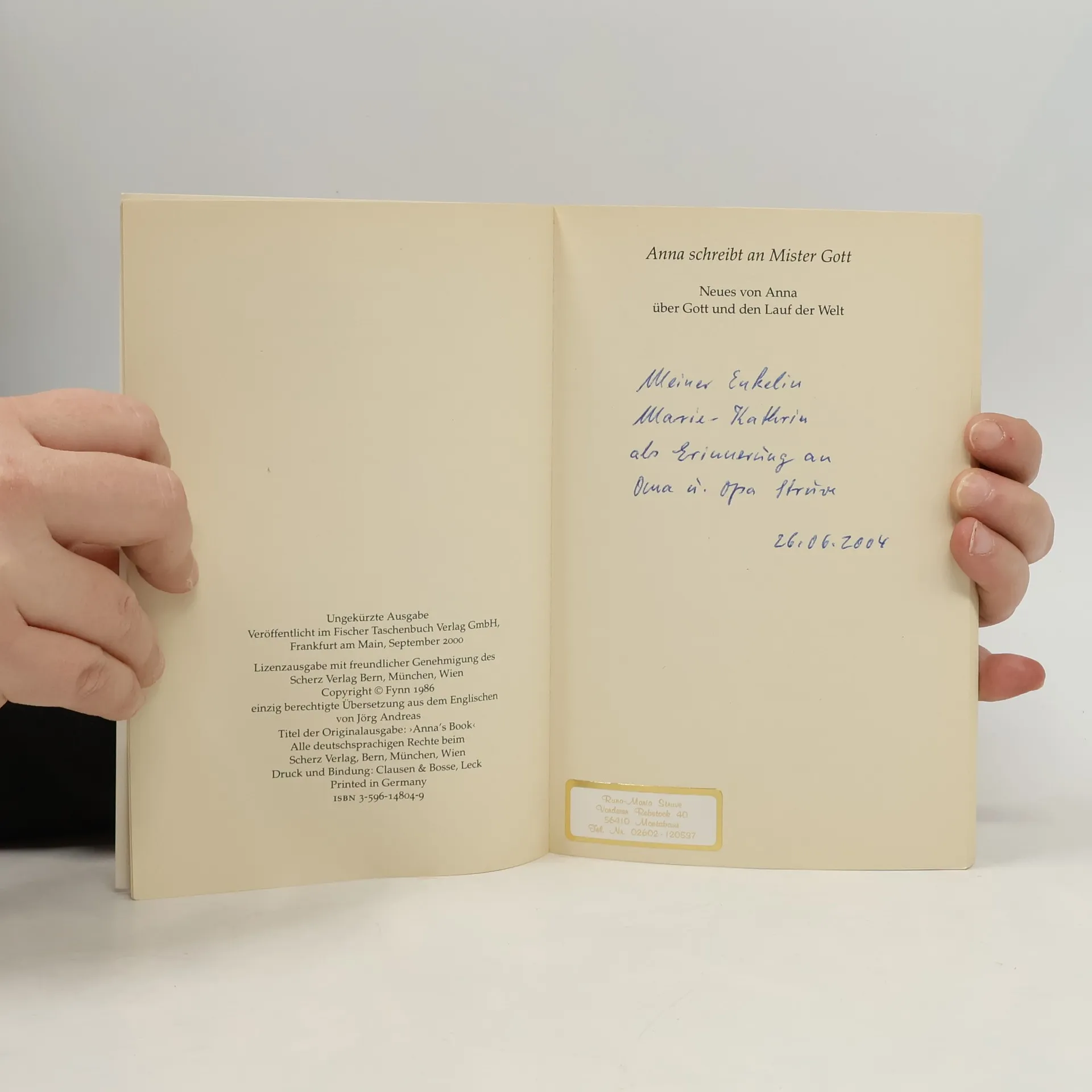Anna schreibt an Mister Gott, Fynn