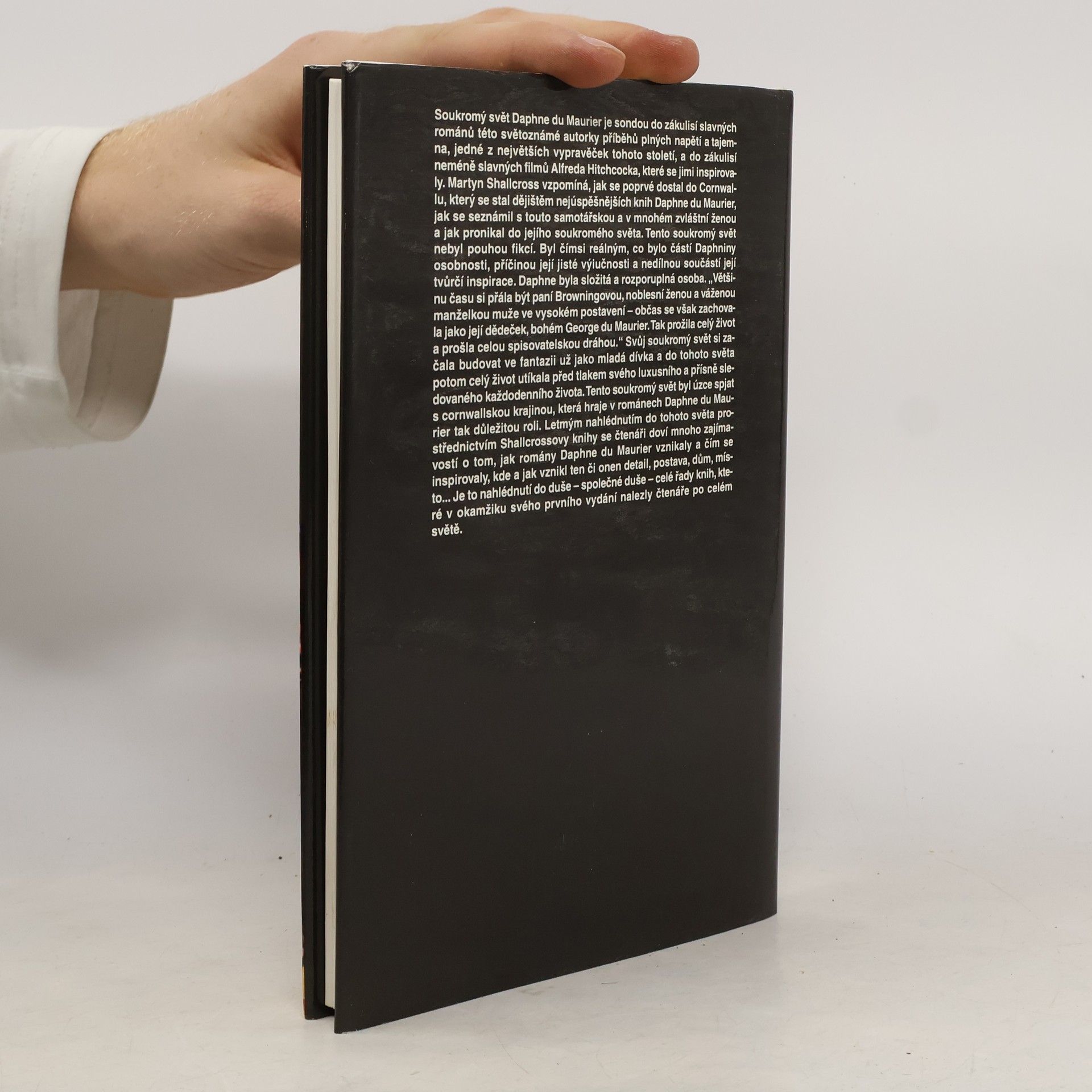 Kniha shromažďuje vnější zajímavosti ze života slavné autorky s převahou údajů o filmových adaptacích jejího díla. Soukromý svět Daphne du Maurier je sondou do zákulisí slavných románů této světoznámé autorky příběhů plných napětí a tajemna, jedné z největších vypravěček minulého století, a do zákulisí neméně slavných filmů Alfreda Hitchcocka, které se jimi inspirovaly. Martyn Shallcross vzpomíná, jak se poprvé dostal do Cornwallu, který se stal dějištěm nejúspěšnějších knih Daphne du Maurier, jak se seznámil s touto samotářskou a v mnohém zvláštní ženou a jak pronikal do jejího soukromého světa.