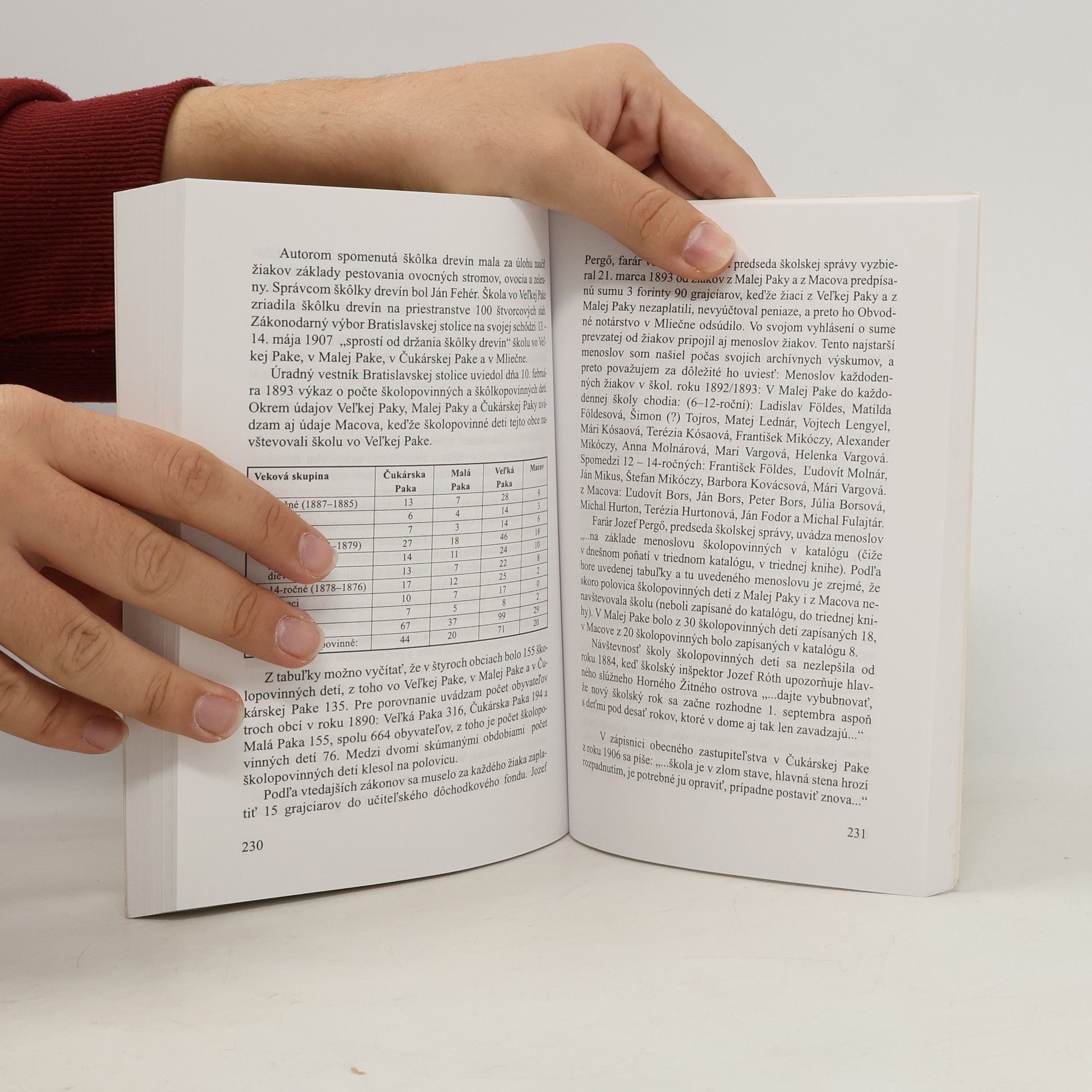 Kapitoly: Najstaršie dejiny do roku 1526, Zemepáni obcí Veľká Paka, Malá Paka a Čukárska Paka po roku 1526, Život v obciach v 17. až 19. storočí a najvýznamnejšie súpisy obyvateľov, Jozefínsky opis obcí Bratislavskej stolice z roku 1785, Rímsko-katolícke matriky Veľkej Paky, Zemianske rody, Pakayovci z Paky, Obecná škola vo Veľkej Pake, Kostol a fara Svätého Ladislava vo Veľkej Pake, Staré obecné mapy Veľkej a Malej Paky, Erb obce Veľká Paka, Architektonické pamiatky vo Veľkej, Malej a Čukárskej Pake. Sociálne rozvrstvenie obyvateľstva po roku 1848, Obecné zastupiteľstvo 1848-1919, V zmenených pomeroch 1920-1938, Opätovné pripojenie Žitného ostrova k Maďarsku 1938-1945, Problémy okolo zjednocovania obcí, V cudzej zemi, v službe cudzích záujmov, Vnútorné osadenie a výmena obyvateľstva, Školstvo, Vzdelávanie, zábava, Sakrálne (cirkevné) kultúrno-historické pamiatky, Vojaci svätého Floriána, Obyvateľstvo obce v zrkadle čísel, Železnice na Žitnom ostrove, Vodopis, Protimajetkové trestné činy, Smútočné, žalostné udalosti.