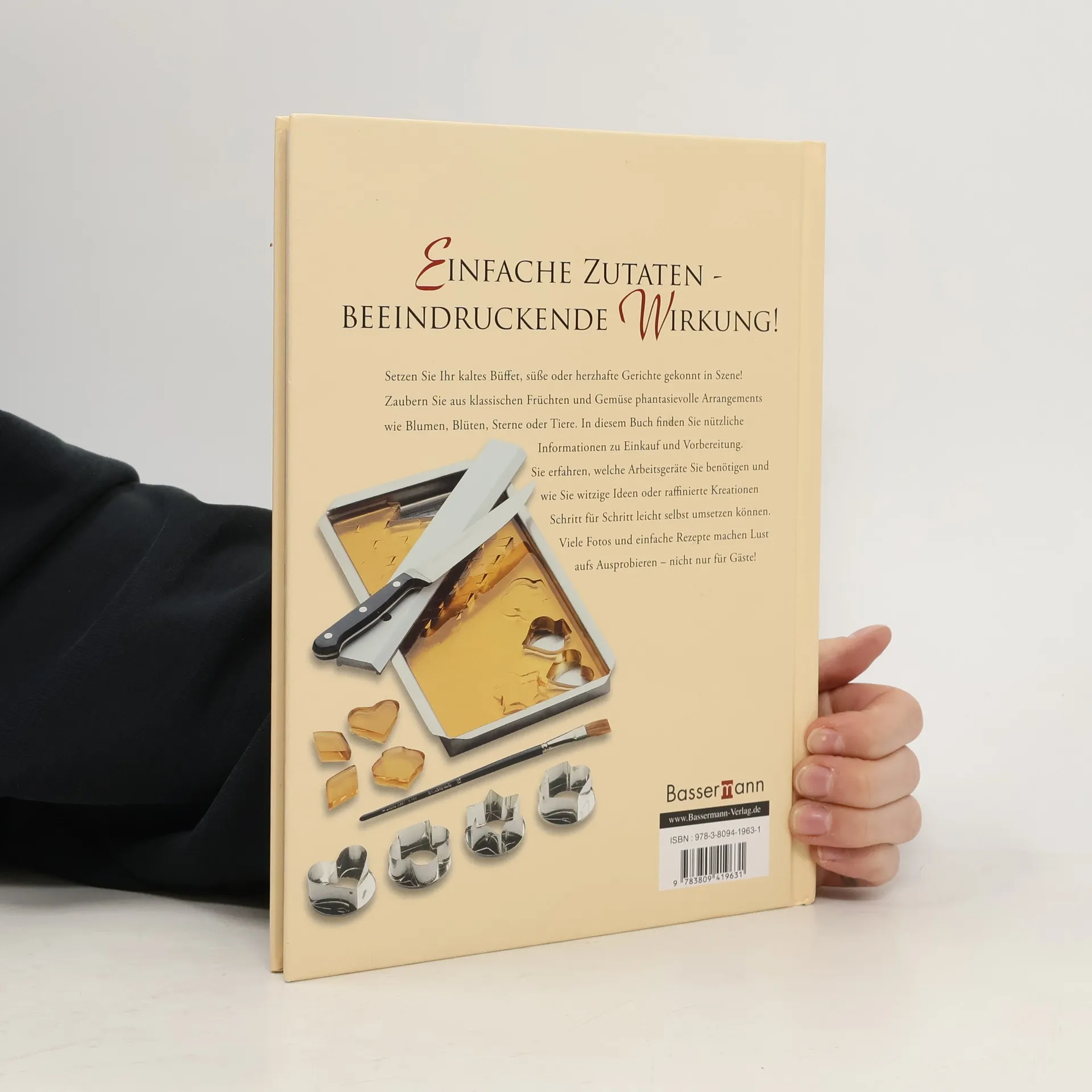 Einfache Zutaten - beeindruckende Wirkung und endlich wieder da! Dieses Buch zeigt, wie aus einfachen Zutaten phantasievolle Arrangements wie Blumen, Blüten, Sterne oder Tiere gezaubert werden. Sie erfahren, welche Arbeitsgeräte benötigt werden und wie witzige Ideen und raffinierte Kreationen Schritt für Schritt leicht umgesetzt werden können. Mit 200 Vorschlägen für raffinierte Garnituren.