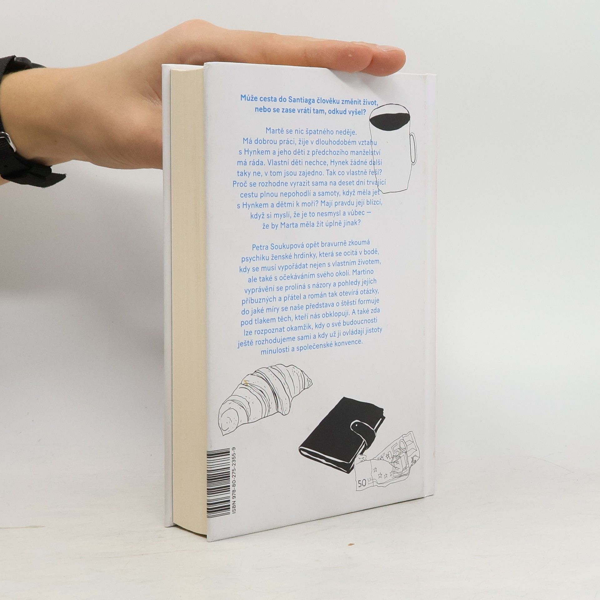 Může cesta do Santiaga změnit člověku život nebo se zase vrátí tam, odkud vyšel? Martě se nic špatného neděje. Má dobrou práci, žije v dlouhodobém vztahu s Hynkem a jeho děti z předchozího manželství má ráda. Svoje děti nechce, Hynek žádné další taky ne, v tom jsou zajedno. Tak co chce vlastně řešit? Proč se rozhodne vyrazitsama na deset dní trvající cestu plnou nepohodlí a samoty, když měla jet s Hynkem a dětmi k moři? Mají pravdu její blízcí, když si myslí, že je to nesmysl a vůbec — že by Marta měla žít úplně jinak? Petra Soukupová opět bravurně zkoumá psychiku ženské hrdinky, která se ocitá v bodě, kdy se musí vypořádat nejen s vlastním životem, ale také s očekáváními svého okolí. Martino vyprávění se prolíná s názory a pohledy jejích blízkých a román tak otevírá otázky, do jaké míry se naše představa o štěstí formuje pod tlakem těch, kteří nás obklopují. A také zda lze rozpoznat okamžik, kdy o své budoucnosti ještě rozhodujeme sami a kdy už ji ovládají jistoty minulosti a společenské konvence.