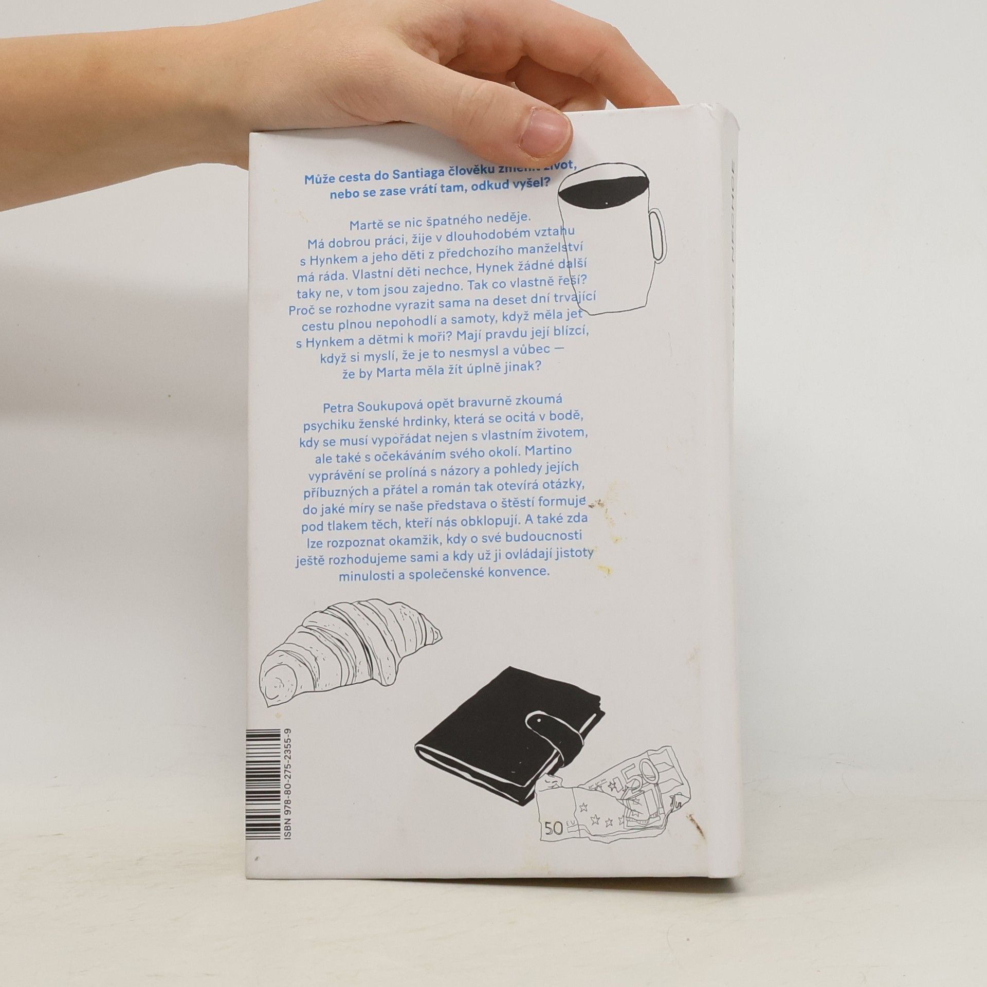 Může cesta do Santiaga změnit člověku život nebo se zase vrátí tam, odkud vyšel? Martě se nic špatného neděje. Má dobrou práci, žije v dlouhodobém vztahu s Hynkem a jeho děti z předchozího manželství má ráda. Svoje děti nechce, Hynek žádné další taky ne, v tom jsou zajedno. Tak co chce vlastně řešit? Proč se rozhodne vyrazitsama na deset dní trvající cestu plnou nepohodlí a samoty, když měla jet s Hynkem a dětmi k moři? Mají pravdu její blízcí, když si myslí, že je to nesmysl a vůbec — že by Marta měla žít úplně jinak? Petra Soukupová opět bravurně zkoumá psychiku ženské hrdinky, která se ocitá v bodě, kdy se musí vypořádat nejen s vlastním životem, ale také s očekáváními svého okolí. Martino vyprávění se prolíná s názory a pohledy jejích blízkých a román tak otevírá otázky, do jaké míry se naše představa o štěstí formuje pod tlakem těch, kteří nás obklopují. A také zda lze rozpoznat okamžik, kdy o své budoucnosti ještě rozhodujeme sami a kdy už ji ovládají jistoty minulosti a společenské konvence.