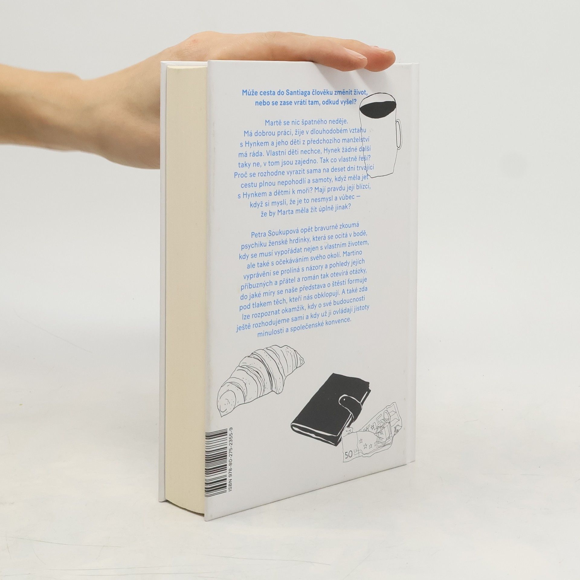 Může cesta do Santiaga změnit člověku život nebo se zase vrátí tam, odkud vyšel? Martě se nic špatného neděje. Má dobrou práci, žije v dlouhodobém vztahu s Hynkem a jeho děti z předchozího manželství má ráda. Svoje děti nechce, Hynek žádné další taky ne, v tom jsou zajedno. Tak co chce vlastně řešit? Proč se rozhodne vyrazitsama na deset dní trvající cestu plnou nepohodlí a samoty, když měla jet s Hynkem a dětmi k moři? Mají pravdu její blízcí, když si myslí, že je to nesmysl a vůbec — že by Marta měla žít úplně jinak? Petra Soukupová opět bravurně zkoumá psychiku ženské hrdinky, která se ocitá v bodě, kdy se musí vypořádat nejen s vlastním životem, ale také s očekáváními svého okolí. Martino vyprávění se prolíná s názory a pohledy jejích blízkých a román tak otevírá otázky, do jaké míry se naše představa o štěstí formuje pod tlakem těch, kteří nás obklopují. A také zda lze rozpoznat okamžik, kdy o své budoucnosti ještě rozhodujeme sami a kdy už ji ovládají jistoty minulosti a společenské konvence.