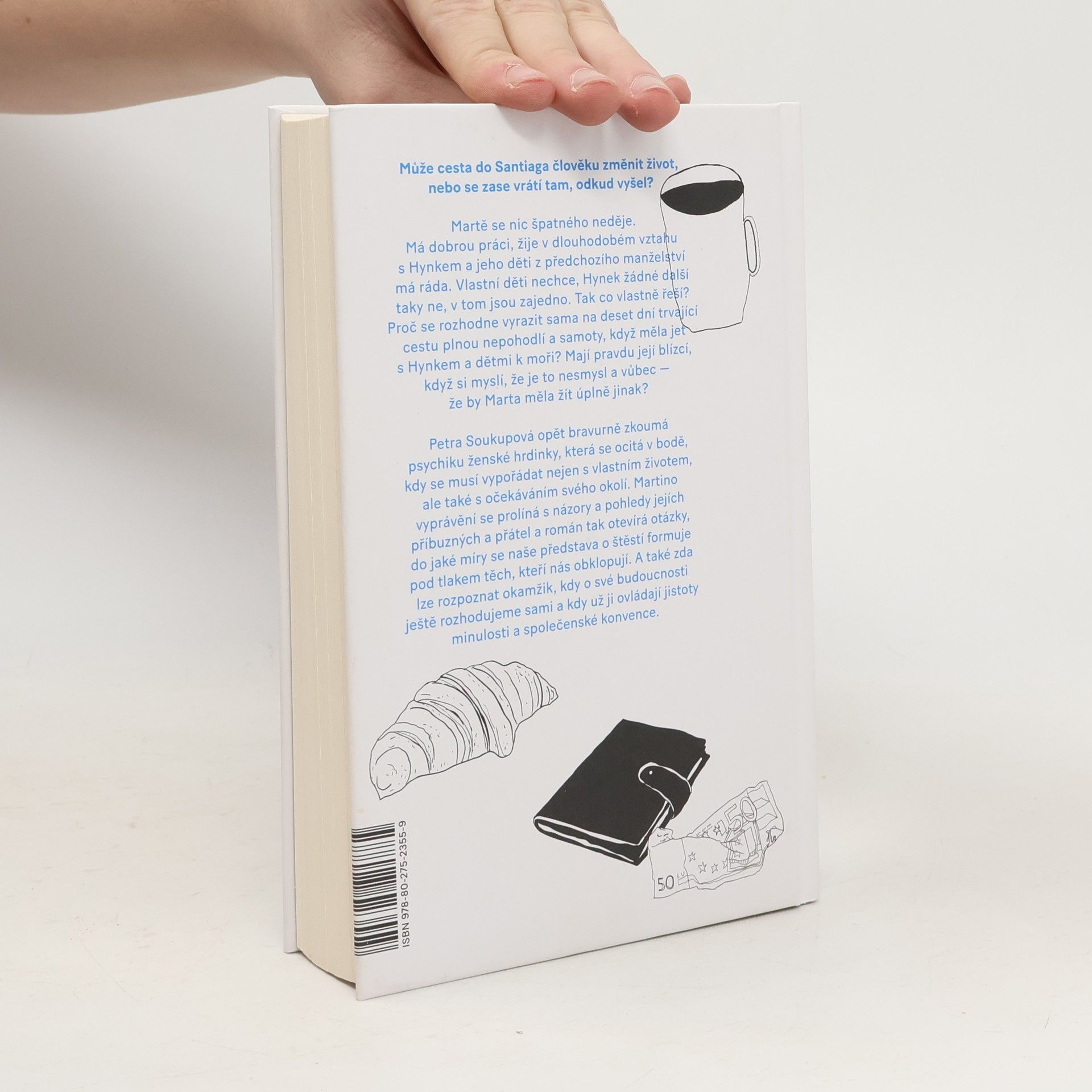 Může cesta do Santiaga změnit člověku život nebo se zase vrátí tam, odkud vyšel? Martě se nic špatného neděje. Má dobrou práci, žije v dlouhodobém vztahu s Hynkem a jeho děti z předchozího manželství má ráda. Svoje děti nechce, Hynek žádné další taky ne, v tom jsou zajedno. Tak co chce vlastně řešit? Proč se rozhodne vyrazitsama na deset dní trvající cestu plnou nepohodlí a samoty, když měla jet s Hynkem a dětmi k moři? Mají pravdu její blízcí, když si myslí, že je to nesmysl a vůbec — že by Marta měla žít úplně jinak? Petra Soukupová opět bravurně zkoumá psychiku ženské hrdinky, která se ocitá v bodě, kdy se musí vypořádat nejen s vlastním životem, ale také s očekáváními svého okolí. Martino vyprávění se prolíná s názory a pohledy jejích blízkých a román tak otevírá otázky, do jaké míry se naše představa o štěstí formuje pod tlakem těch, kteří nás obklopují. A také zda lze rozpoznat okamžik, kdy o své budoucnosti ještě rozhodujeme sami a kdy už ji ovládají jistoty minulosti a společenské konvence.