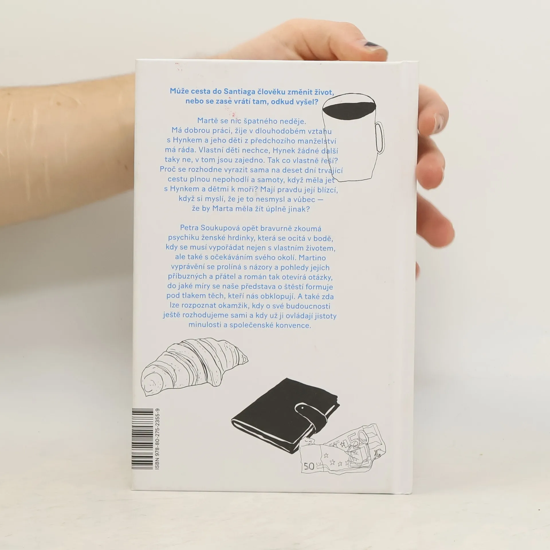 Může cesta do Santiaga změnit člověku život nebo se zase vrátí tam, odkud vyšel? Martě se nic špatného neděje. Má dobrou práci, žije v dlouhodobém vztahu s Hynkem a jeho děti z předchozího manželství má ráda. Svoje děti nechce, Hynek žádné další taky ne, v tom jsou zajedno. Tak co chce vlastně řešit? Proč se rozhodne vyrazitsama na deset dní trvající cestu plnou nepohodlí a samoty, když měla jet s Hynkem a dětmi k moři? Mají pravdu její blízcí, když si myslí, že je to nesmysl a vůbec — že by Marta měla žít úplně jinak? Petra Soukupová opět bravurně zkoumá psychiku ženské hrdinky, která se ocitá v bodě, kdy se musí vypořádat nejen s vlastním životem, ale také s očekáváními svého okolí. Martino vyprávění se prolíná s názory a pohledy jejích blízkých a román tak otevírá otázky, do jaké míry se naše představa o štěstí formuje pod tlakem těch, kteří nás obklopují. A také zda lze rozpoznat okamžik, kdy o své budoucnosti ještě rozhodujeme sami a kdy už ji ovládají jistoty minulosti a společenské konvence.