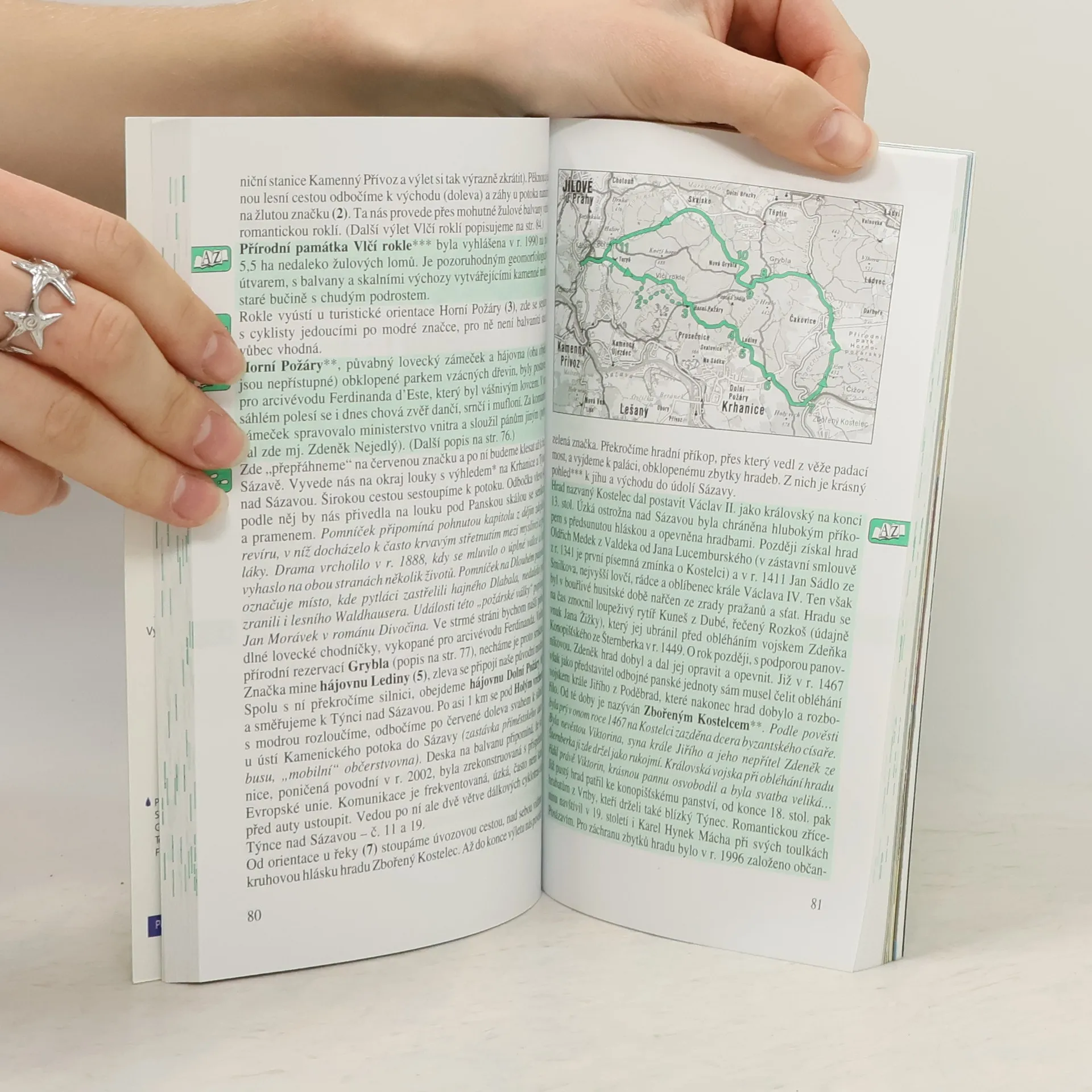 Vodácká řeka Sázava a její slavná trampská éra, Sázava dávných plavců, Sázava staroslověnská v Sázavském klášteře, hrad Český Šternberk v roli strážce údolí, další středověké hrady na obou jejích březích, Pirkštejn jako z pohádky, Ladovy Hrusice se závanem dětství a časů her, Jílové u Prahy a jeho slavná "zlatá" minulost, přírodní park Velkopopovicko, počátky české astronomie na Ondřejově, nostalgické jízdy Posázavským pacifikem, hluboké požárské lesy atd. Vymezení popisované oblasti: Vrané nad Vltavou - Zvole - Okrouhlo - Kamenice - Strančice - Struhařov - Černé Voděrady - Konojedy - Horní Kruty - Církvice - Uhlířské Janovice - Podveky - Český Šternberk - dálnice D1 po Bělčice - Mrač - Týnec nad Sázavou - Lešany - Krňany - Štěchovice - Davle.