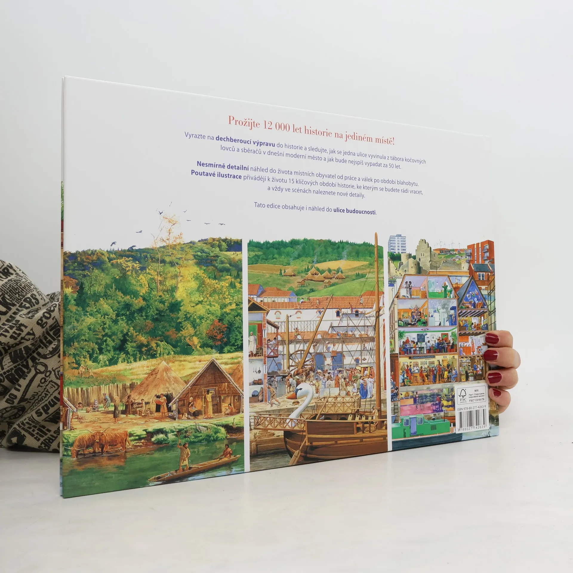 Podívejte se, jak se jedna ulice během tisíců let vyvinula z malého tábora doby kamenné v rušnou hlavní třídu v srdci metropole. Tato nádherně ilustrovaná kniha přivádí k životu patnáct klíčových historických období. Zjistíte, jak lidé kdysi dávno žili - jaké nástroje používali, jaké oblečení nosili, co jedli a co celé dny dělali. Obrázkový příběh vám představí spoustu fascinujících a zajímavých faktů, podaných ve formě poučného, ale zábavného textu. Prožijte 12 000 let historie s oceňovanou knihou od Stevea Noona Ulice v průběhu věků: Od doby kamenné až do budoucnosti. Vyrazte na dechberoucí výpravu do historie a sledujte, jak se jedna ulice vyvinula z tábora kočovných lovců a sběračů v dnešní moderní město a jak bude nejspíš vypadat za padesát let. Nesmírně detailní náhled do života místních obyvatel, od práce a válek po období blahobytu. Poutavé ilustrace přivádějí k životu 15 klíčových období historie, ke kterým se budete rádi vracet, a vždy v každé scéně naleznete nové detaily. Toto vydání obsahuje i náhled do ulice budoucnosti.