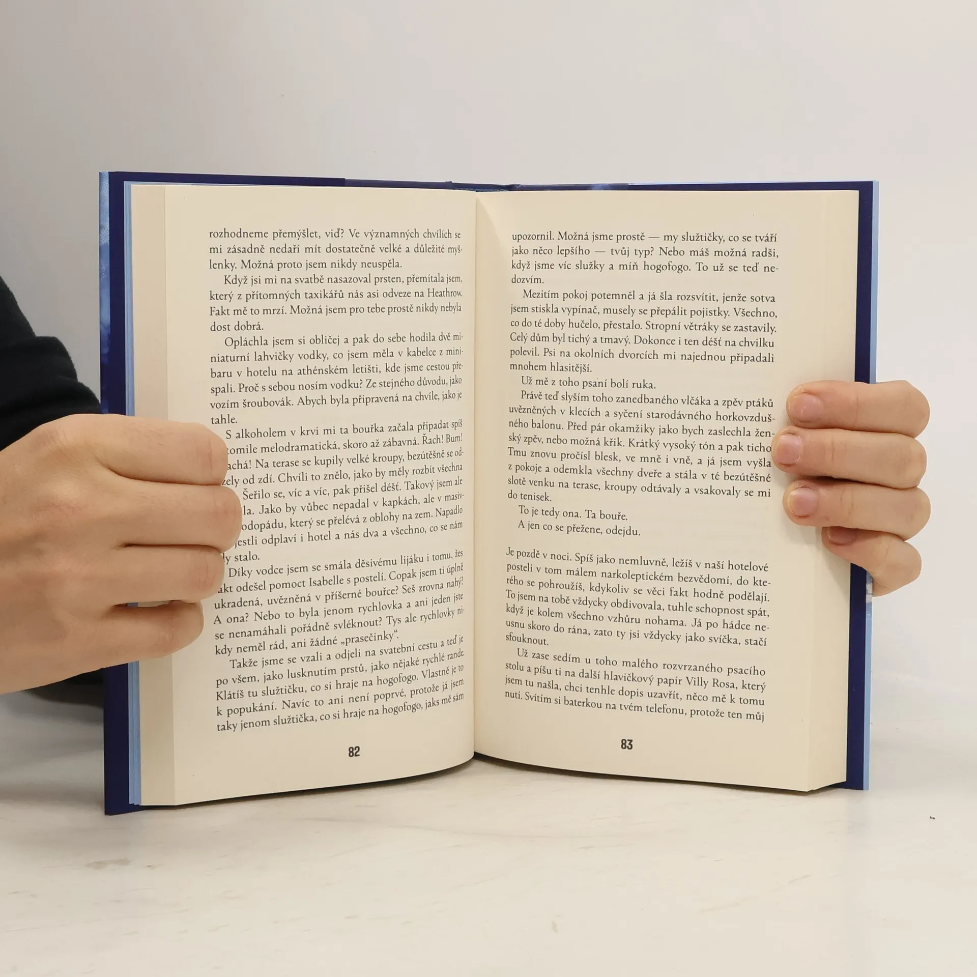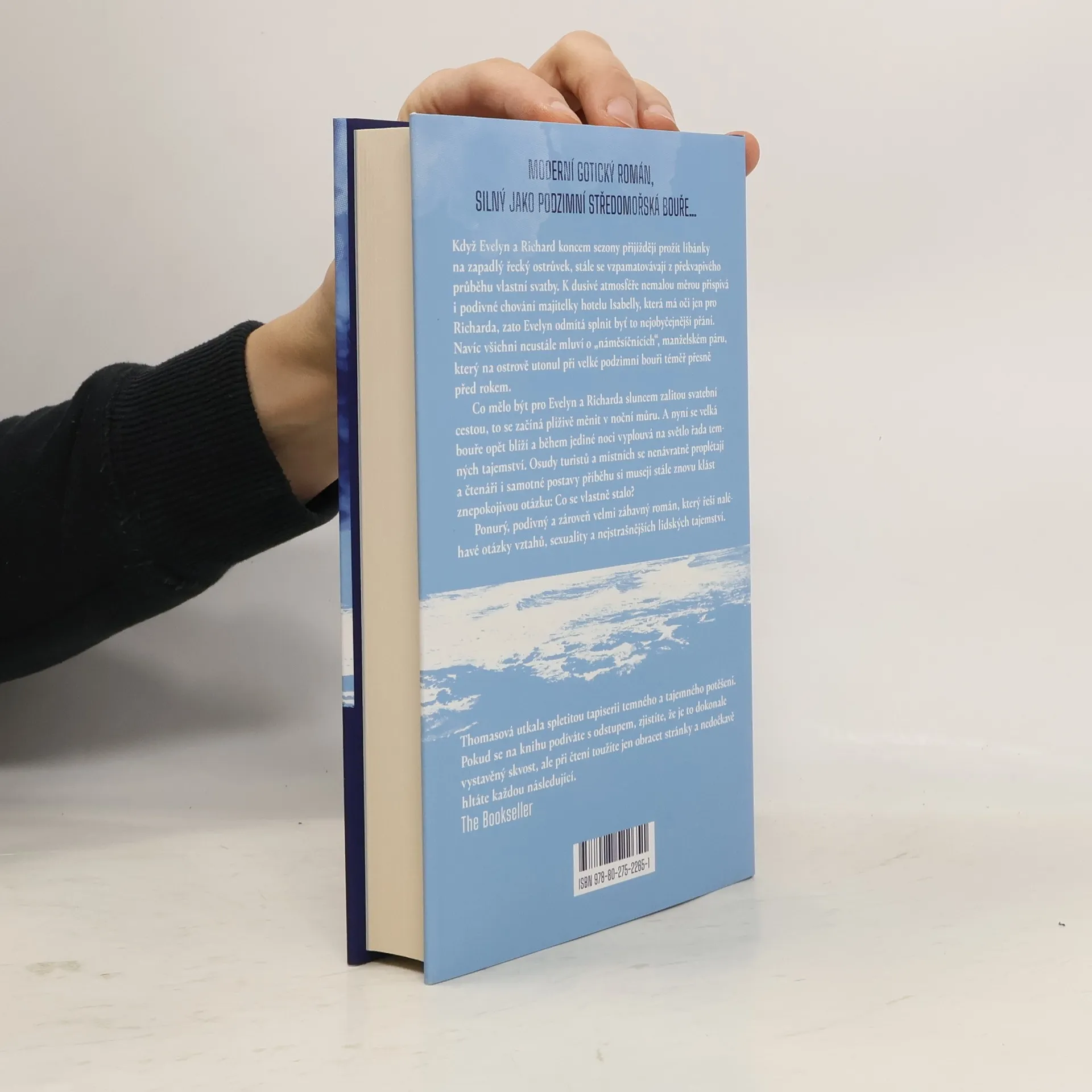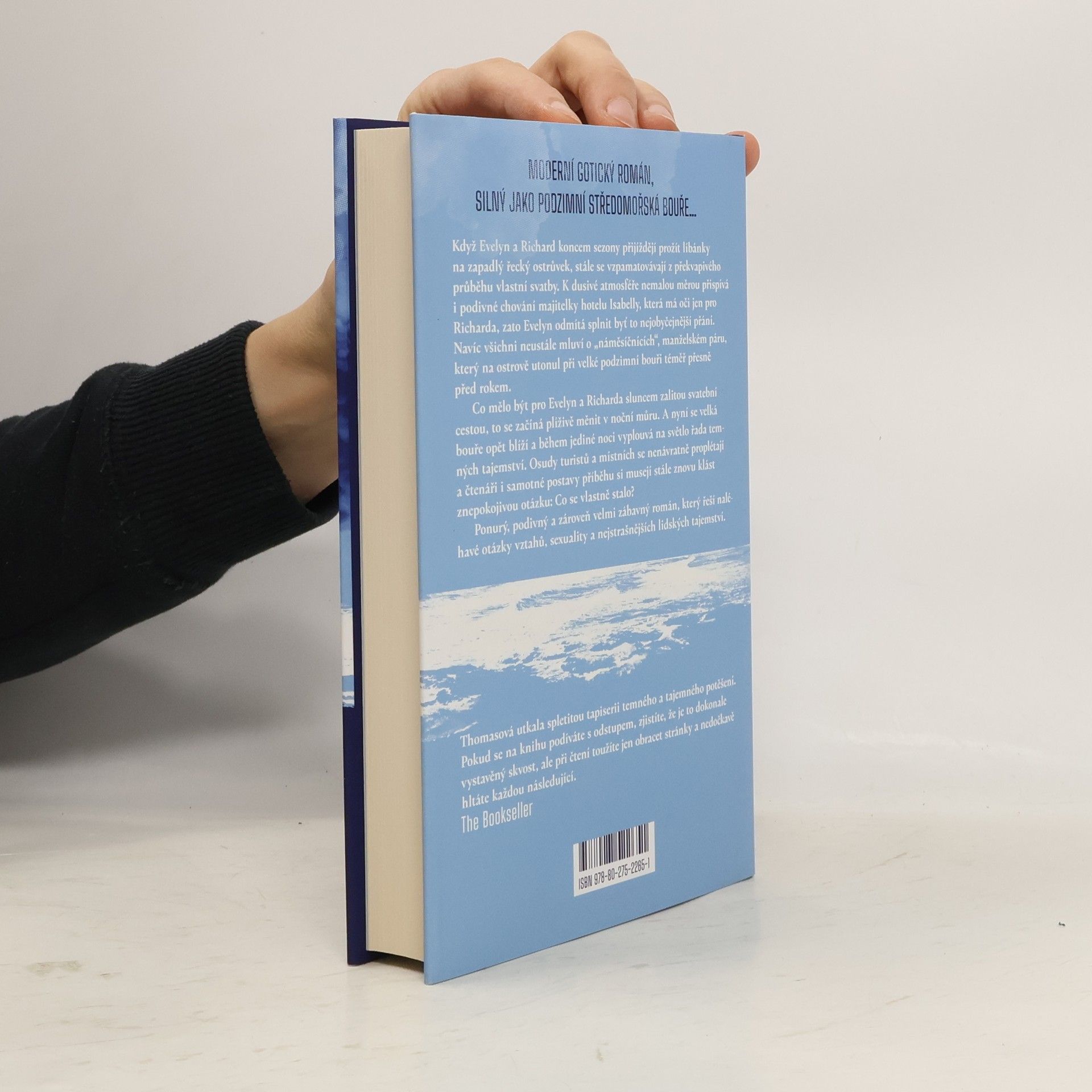 Když váš život ovládají síly mocné jako podzimní středomořská bouře… Když Evelyn a Richard koncem sezony přijíždějí na líbánky na zapadlý řecký ostrůvek, stále se vzpamatovávají z překvapivého průběhu vlastní svatby. K dusivé atmosféře nemalou měrou přispívá i podivné chování majitelky hotelu Isabelly, která má očijen pro Richarda, zato Evelyn odmítá splnit byť to nejobyčejnější přání. Navíc všichni neustále mluví o „náměsíčnících“, manželském páru, který na ostrově utonul při velké podzimní bouři téměř přesně před rokem. Co mělo být sluncem zalitou svatební cestou, to se pro Evelyn a Richarda plíživě mění v noční můru. A nyní se velká bouře opět blíží a během jediné noci vyplouvá na světlo řada temných tajemství. Osudy turistů a místních se nenávratně proplétají a čtenáři i sami protagonisté si musí stále znovu klást znepokojivou otázku: Co se vlastně stalo?