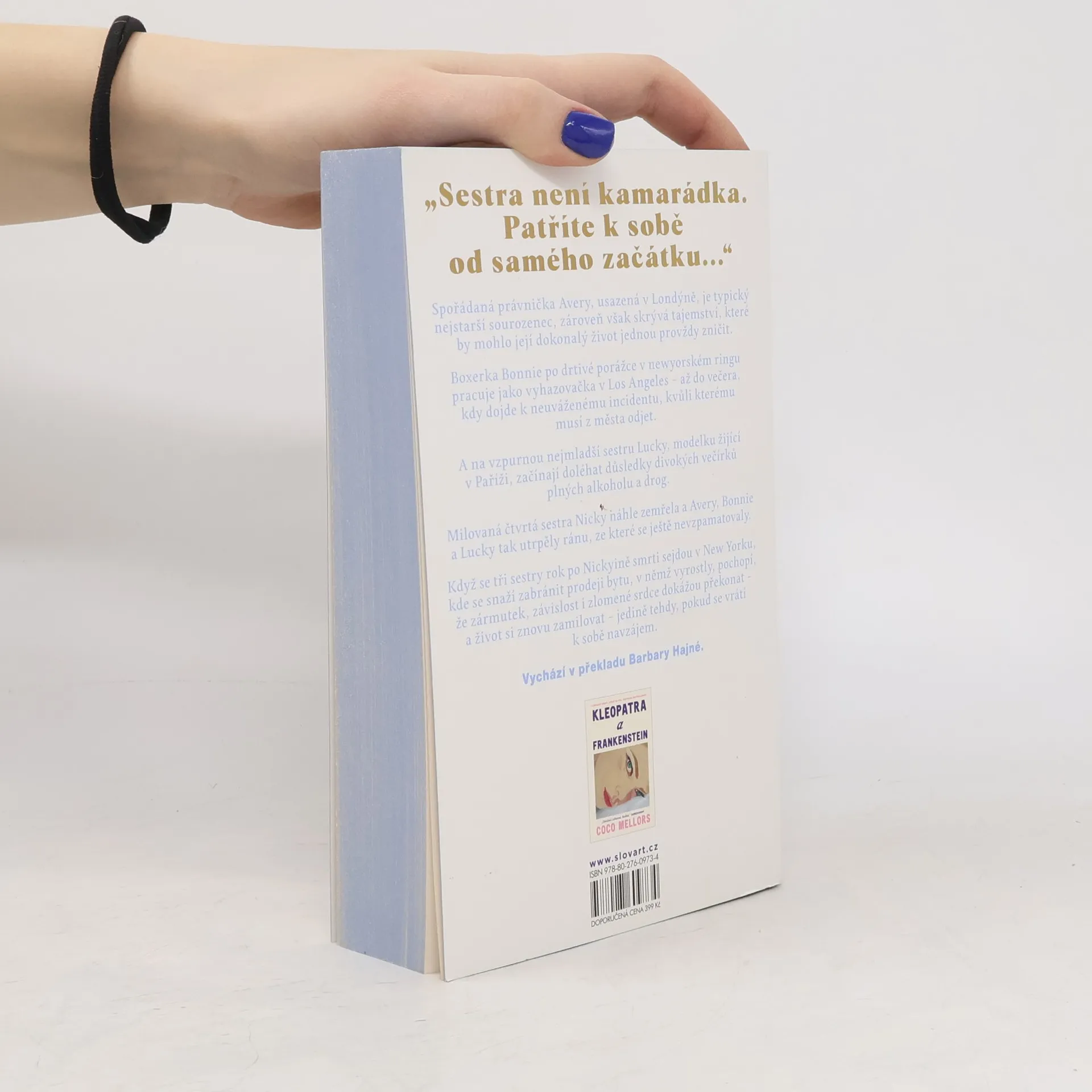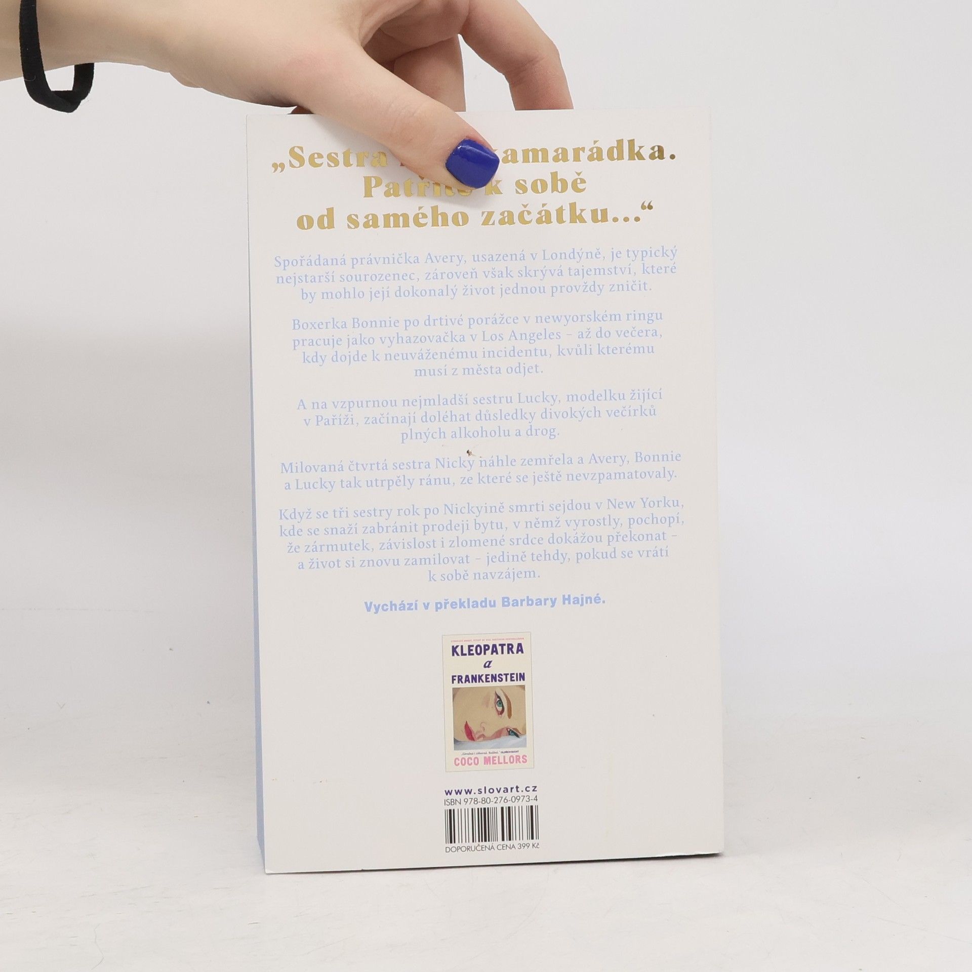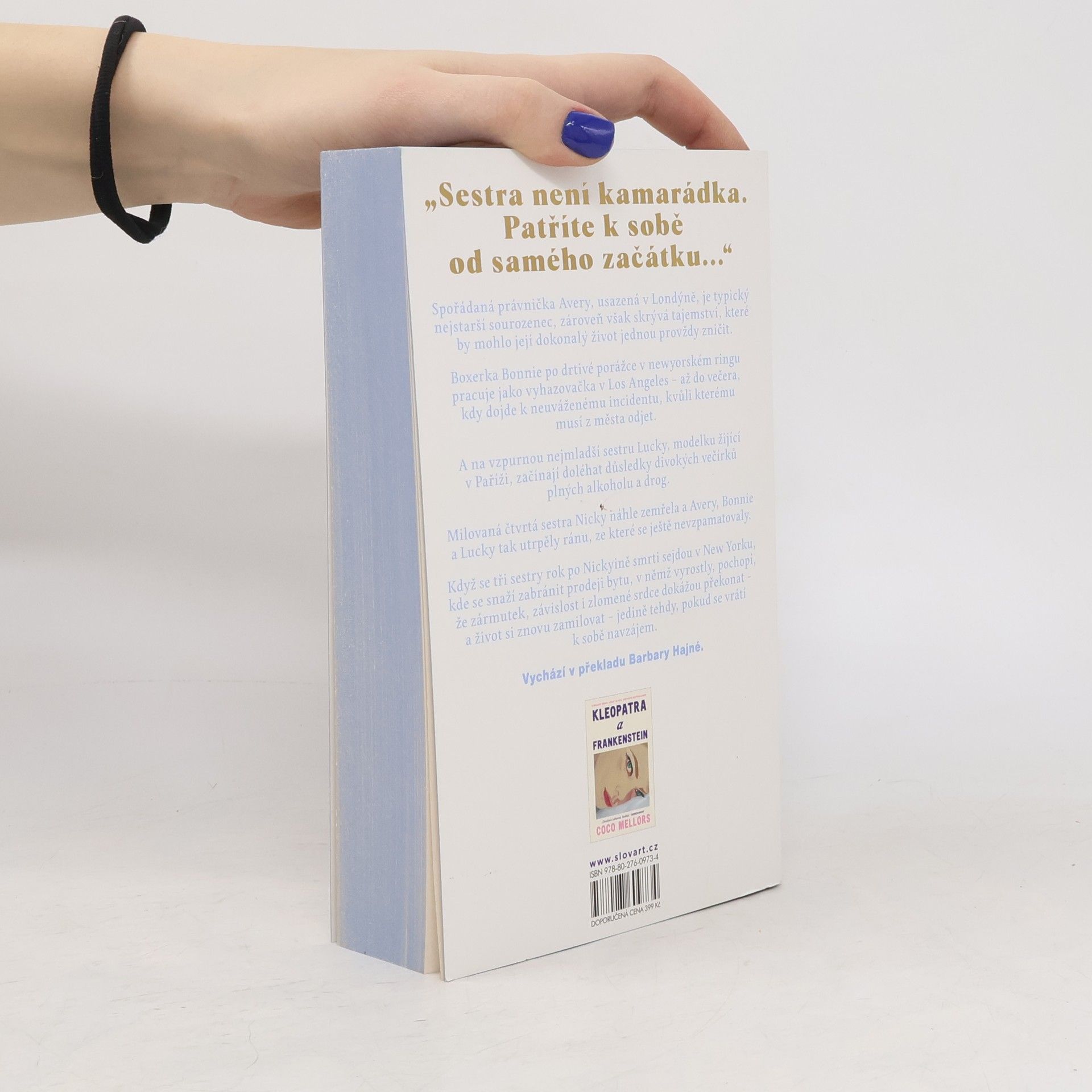 Sestry Blueovy byly původně čtyři. Jedna z nich ale nečekaně zemřela a zbývající tři se rok po její smrti vrací z různých světových velkoměst do rodného New Yorku, aby tam zabránily prodeji bytu, v němž vyrostly. Prvorozená Avery, vyléčená ze závislosti na heroinu, je úspěšná právnička a žije s manželkou v Londýně. Někdejšíboxerská šampionka Bonnie, tajně zamilovaná do svého trenéra, momentálně pracuje jako vyhazovačka v baru v Los Angeles. A nejmladší Lucky, modelce žijící v Paříži, se postupně vymyká z rukou existence plná večírků a návykových substancí. Tragická smrt jejich sestry Nicky otřásla životy jich všech. Přichází čas odhalování tajemství, dávných i nedávných traumat a pravé podstaty sesterství. Druhý román Coco Mellors, autorky bestselleru Kleopatra a Frankenstein, se soustředí především na složité rodinné vztahy a na dopad, jaký na ně mohou mít ambice, zármutek i závislost.