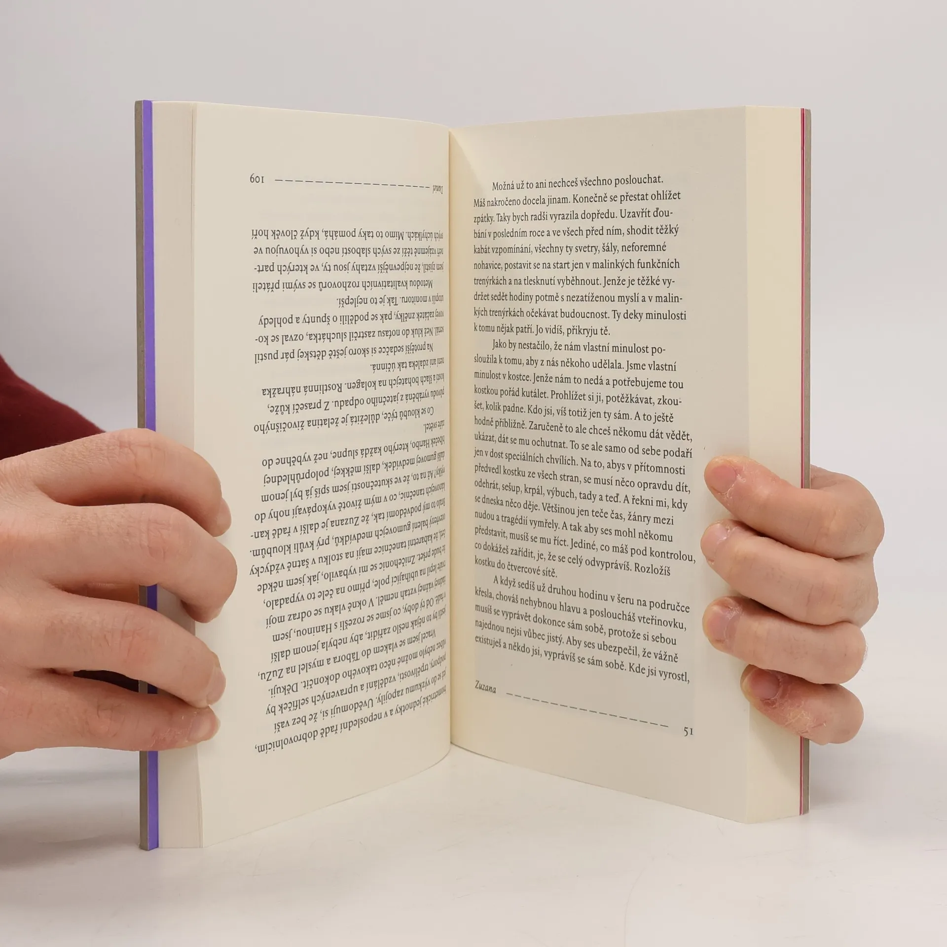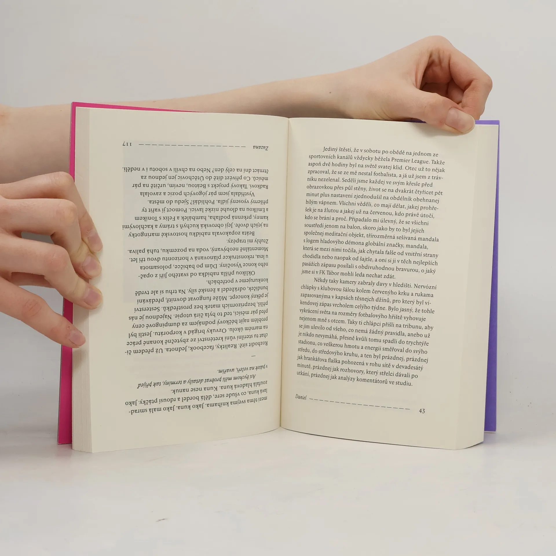 Experimentální román ze současnosti. Daniel vlastní byt v Táboře, ale pracuje v Praze a domů jezdí jen na víkendy. Zuzana odešla od přítele a nemá dost peněz, takže uvítá nájem aspoň na všední dny. Ty dva nespojuje nic než prostor, který každý po svém obývají, a ten prostor je zároveň rozděluje. Jak by vlastně dva lidé mohlimít něco společného? On se stará o umírajícího otce, péče o hrany života však zbude vždycky na ni. Jemu zalehlo srdce, ona má šelest na mozku. Dva příběhy ze současnosti, které se dotýkají a zároveň míjejí, dvě samomluvy, které se až díky čtenáři mohou stát rozhovorem. Jana Šrámková a Jan Němec našli nezvyklý způsob, jak napsat knihu dohromady a zároveň každý zvlášť. Výsledkem je originální román, který lze číst z jedné nebo druhé strany, anebo třeba na přeskáčku. Není to však literární hra, ale osudová volba: na směru čtení nezávisí nic menšího než Danielova a Zuzanina budoucnost. Není však život nakonec palindrom? V elipse spí lev, říká Daniel. Uchem v mechu, odpovídá Zuzana.