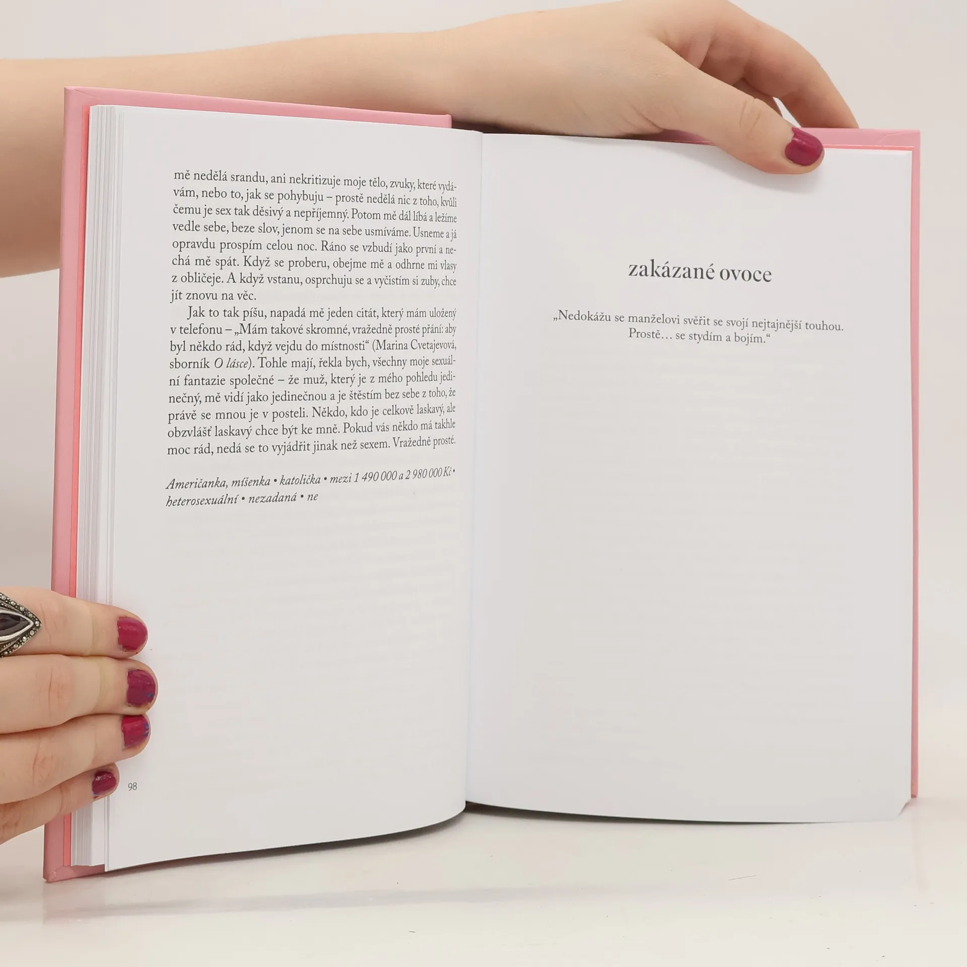 Když mluvíme o sexu, mluvíme o ženství a mateřství, nevěře a zneužívání, souhlasu a respektu, spravedlnosti a rovnostářství, lásce a nenávisti, rozkoši a bolesti. A přesto o něm z nejrůznějších důvodů (některých složitých, a jiných vůbec ne) řada z nás nemluví. Své nejhlubší a nejintimnější obavy i fantazie skrýváme uzamčené v sobě, dokud se neobjeví někdo s klíčem. Ten klíč je tady. Gillian Andersonová v této přelomové knize uvádí sbírku anonymních dopisů stovek žen z celého světa, včetně vlastního anonymního dopisu. Od sikhské ženy, která popisuje svou tajnou touhu po švagrovi; Apačky, která chce být uctívaná jako božské stvoření; bílé Britky, která nechce nic víc, než aby ji někdo naposledy pořádně políbil; další, která si ráda hraje na pantera; anebo od hispánské Židovky žijící v Bangladéši, pro kterou vrchol sexuálního vzrušení představuje otočná koule u dveří. Chci odhaluje, jak ženy vnímají sex, když jim naprostá anonymita poskytne svobodu.
