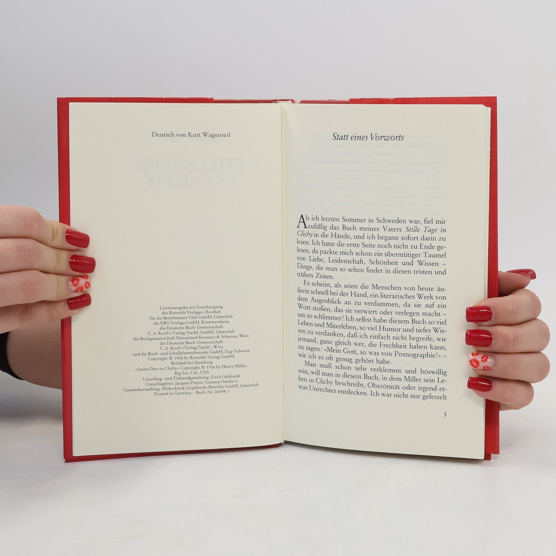 Auch in diesem inzwischen weltberühmten und verfilmten Buch zeigt sich der unsterbliche Henry Miller als Prophet und Moralist. Jahrelang musste er auf die Veröffentlichung warten. Denn «Stille Tage in Clichy» ist nicht, wie der Titel vermuten lassen könnte, eine Idylle im Werk des „obszönsten Schriftstellers der Weltliteratur“ (Sir Herbert Read). Doch sei es, dass sich sein Erzähler Joey dem Mädchen Nys nähert, das er im Café trifft, sei es Mara-Marignan, die sich auf dem Champs-Élysées nach ihm umdreht: Joeys Abenteuer sind von erstaunlicher Heiterkeit. Ganz gleich, ob eine Mutter unter dem Gekreisch ihrer Kinder entblößt wird oder ob Joey mit zwei Dirnen in der Badewanne Brot und Wein zu sich nimmt, fast immer sind seine Handlungen von Gelächter begleitet, gehen unter in wilder Ausgelassenheit. Zugleich beschwört Henry Miller das Paris der dreißiger Jahre und seiner Atmosphäre überschäumender Lebenslust.