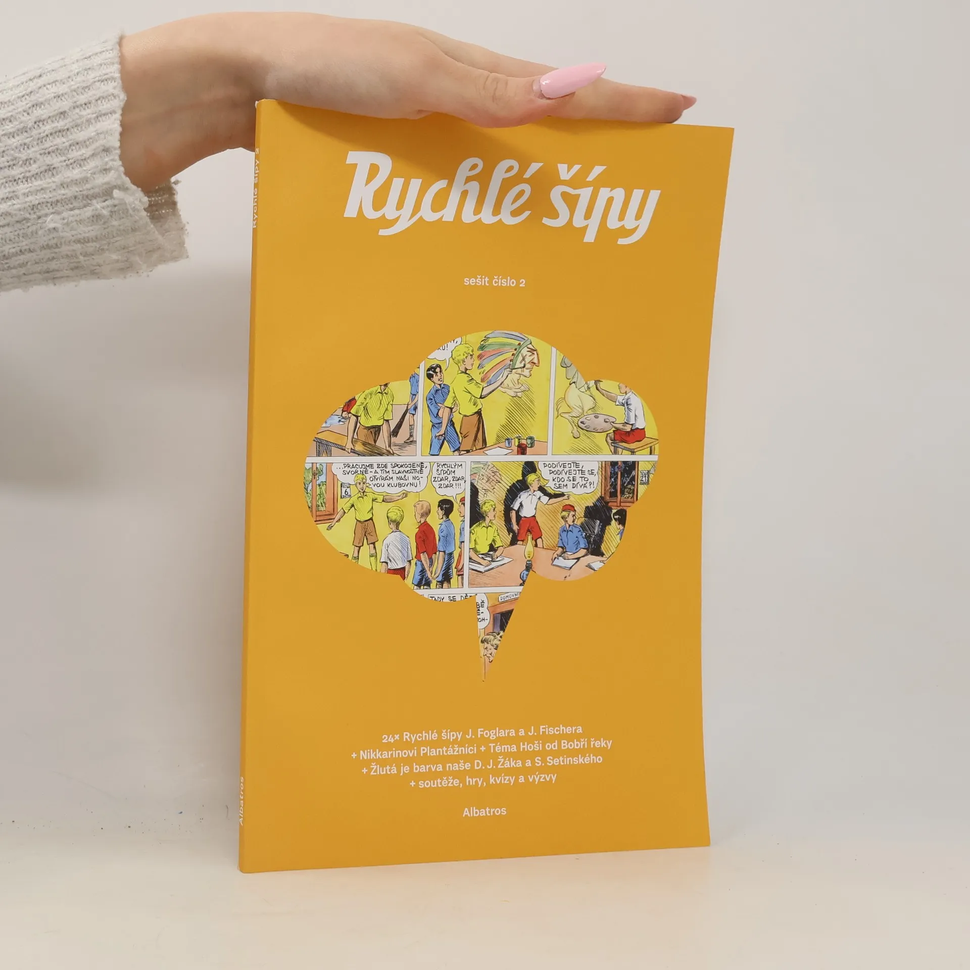 Rychlé šípy vycházejí pro malé čtenáře i jejich rodiče v novém sešitovém vydání. V každém svazečku najdete původní komiksový seriál a zároveň zbrusu nové komiksy ze světa Jaroslava Foglara od současných tvůrců. Komiksy jsou doplněné tematickým povídáním, hrami, soutěžemi a kvízy. Vhodné pro každého plantážníka od 6 do 99 let!V druhém svazku se více dozvíte o románu Hoši od Bobří řeky, který Foglara proslavil. V seriálu kreslíře Nikkarina budete sledovat další dobrodružství Plantážníků, kteří pátrají po minulosti klubu Rychlých šípů.