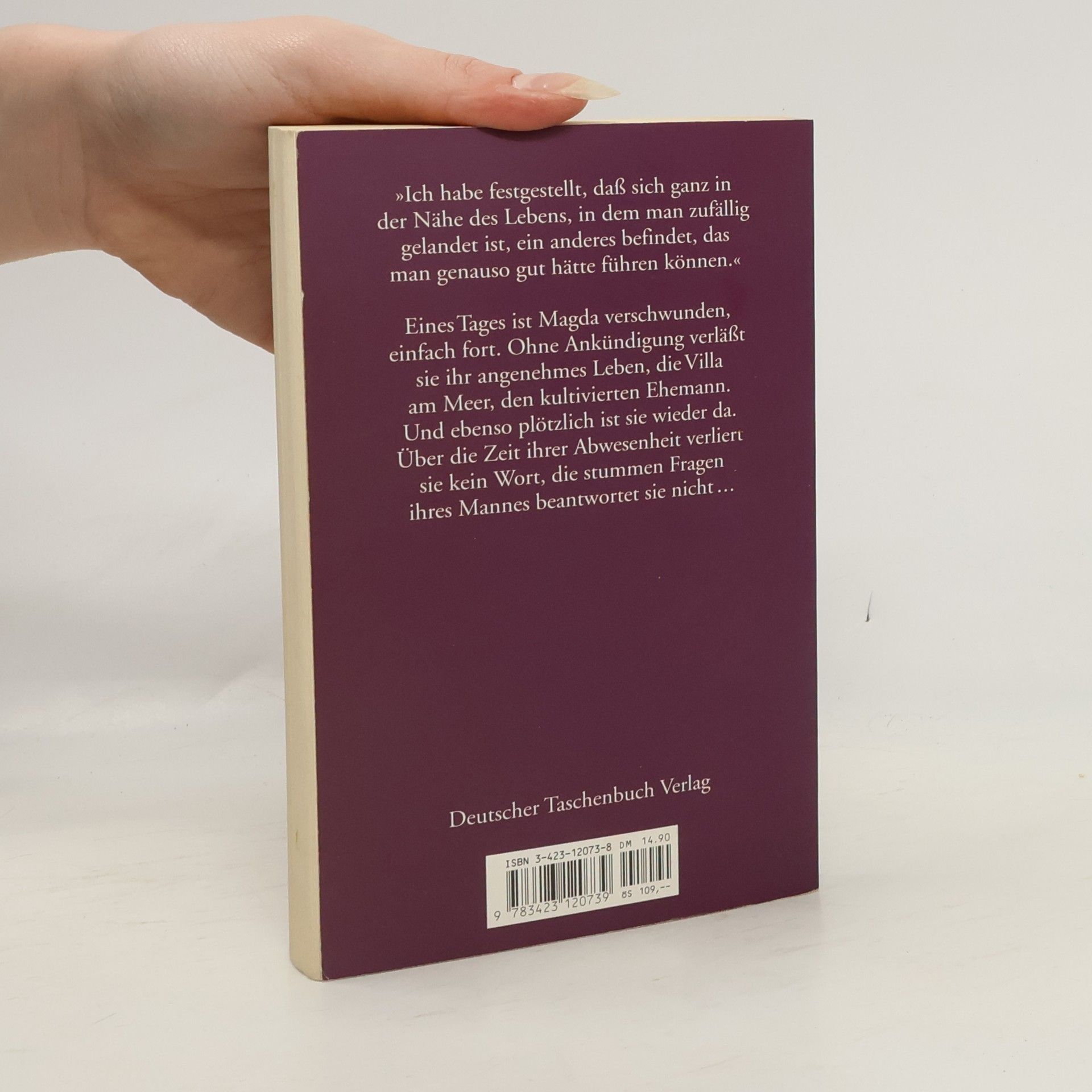 Schweigsamkeit als unverzeihliches Delikt. Eines Tages ist Magda verschwunden, einfach fort. Ohne Ankündigung verlässt sie ihr angenehmes Leben, die Villa am Meer, den kultivierten Ehemann. Und eben so plötzlich ist sie wieder da. Über die Zeit ihrer Abwesenheit verliert sie kein Wort, die stummen Fragen ihres Mannes beantwortet sie nicht...