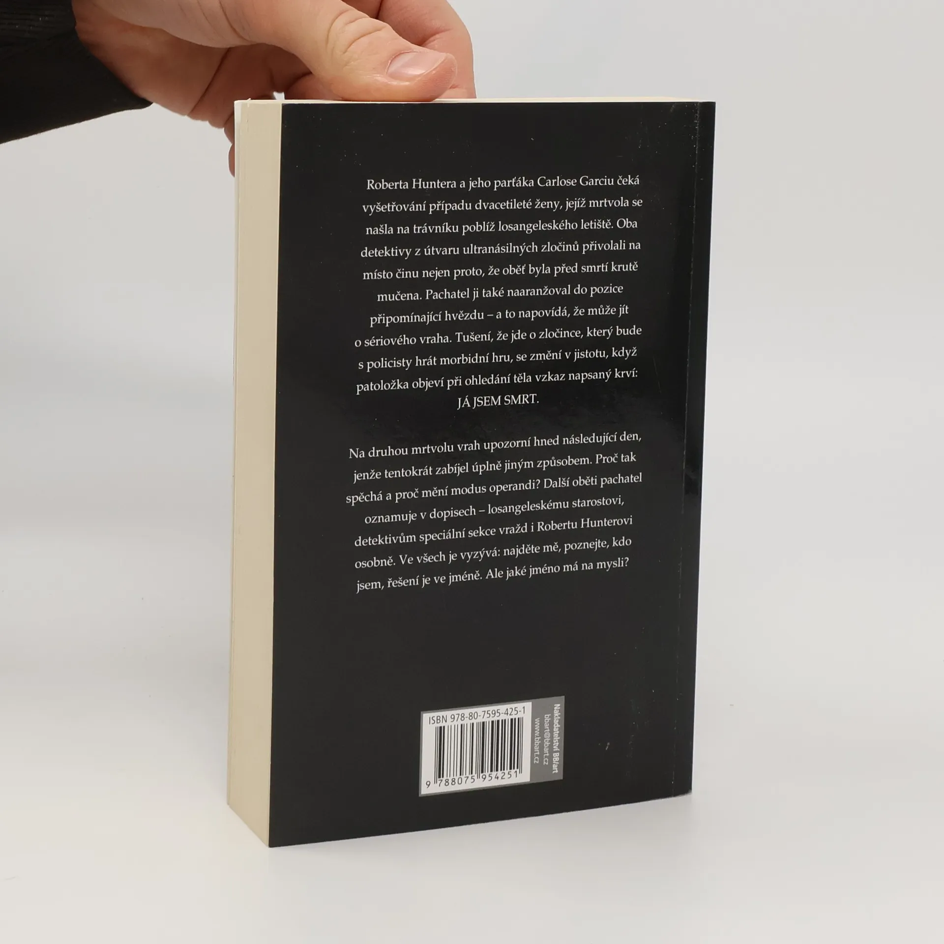 Roberta Huntera a jeho parťáka Carlose Garciu čeká vyšetřování případu dvacetileté ženy, jejíž mrtvola se našla na trávníku poblíž losangeleského letiště. Oba detektivy z útvaru ultranásilných zločinů přivolali na místo činu nejen proto, že oběť byla před smrtí krutě mučena. Pachatel ji také naaranžoval do pozice připomínající hvězdu a to napovídá, že může jít o sériového vraha. Tušení, že jde o zločince, který bude s policisty hrát morbidní hru, se změní v jistotu, když patoložka objeví při ohledání těla vzkaz napsaný krví: JÁ JSEM SMRT.Na druhou mrtvolu vrah upozorní hned následující den, jenže tentokrát zabíjel úplně jiným způsobem. Proč tak spěchá a proč mění modus operandi? Další oběti pachatel oznamuje v dopisech losangeleskému starostovi, detektivům speciální sekce vražd i Robertu Hunterovi osobně. Ve všech je vyzývá: najděte mě, poznejte, kdo jsem, řešení je ve jméně. Ale jaké jméno má na mysli?