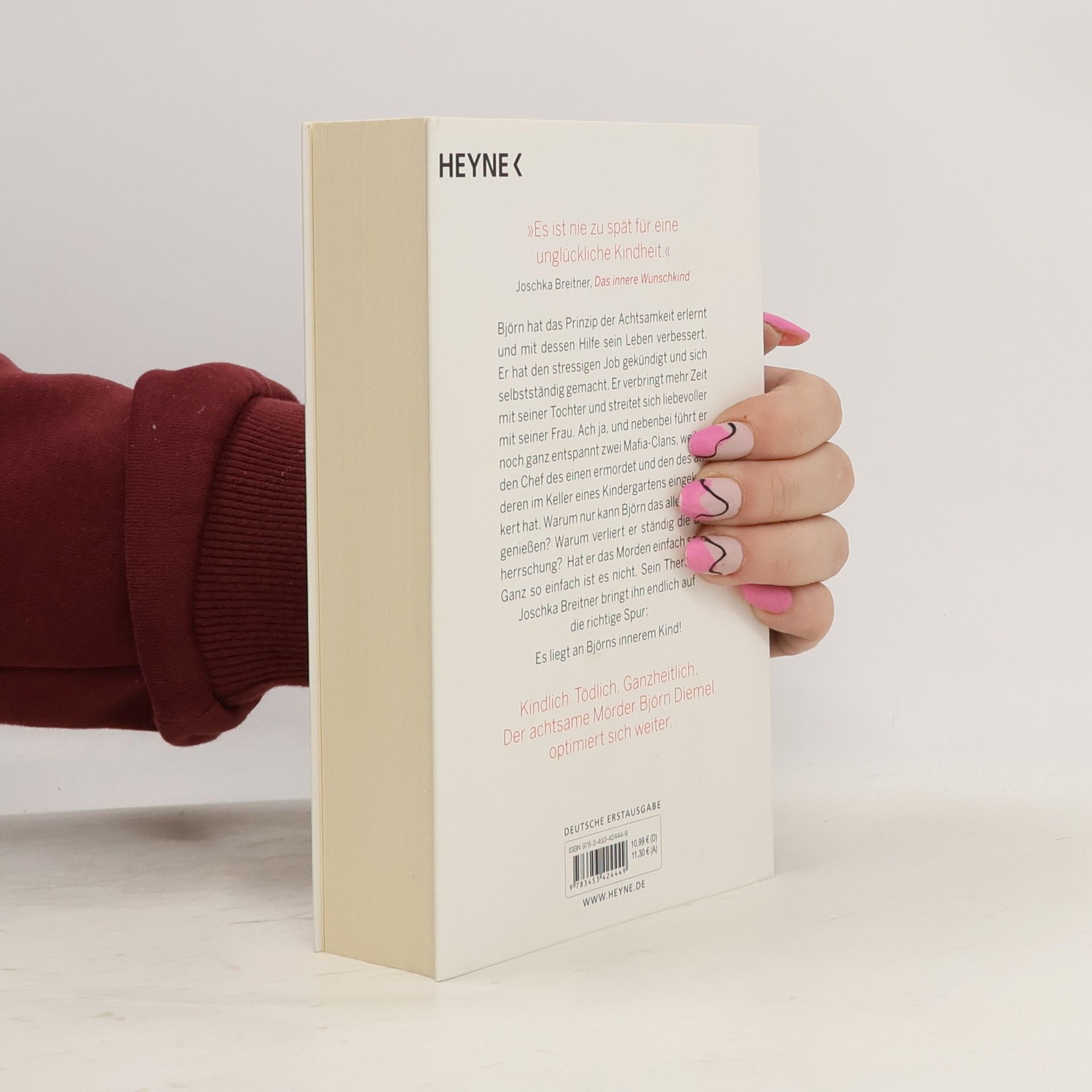 Björn Diemel ist zurück – und mordet ganzheitlicher als je zuvor Björn Diemel hat die Prinzipien der Achtsamkeit erlernt, und mit ihrer Hilfe sein Leben verbessert. Er hat den stressigen Job gekündigt und sich selbstständig gemacht. Er verbringt mehr Zeit mit seiner Tochter und streitet sich in der Regel liebevoller mit seiner Frau. Ach ja, und nebenbei führt er noch ganz entspannt zwei Mafia-Clans, weil er den Chef des einen ermordet und den des anderen im Keller eines Kindergartens eingekerkert hat. Warum nur kann Björn das alles nicht genießen? Warum verliert er ständig die Beherrschung? Hat er das Morden einfach satt? Ganz so einfach ist es nicht. Sein Therapeut Joschka Breitner bringt ihn endlich auf die richtige Spur: Es liegt an Björns innerem Kind!