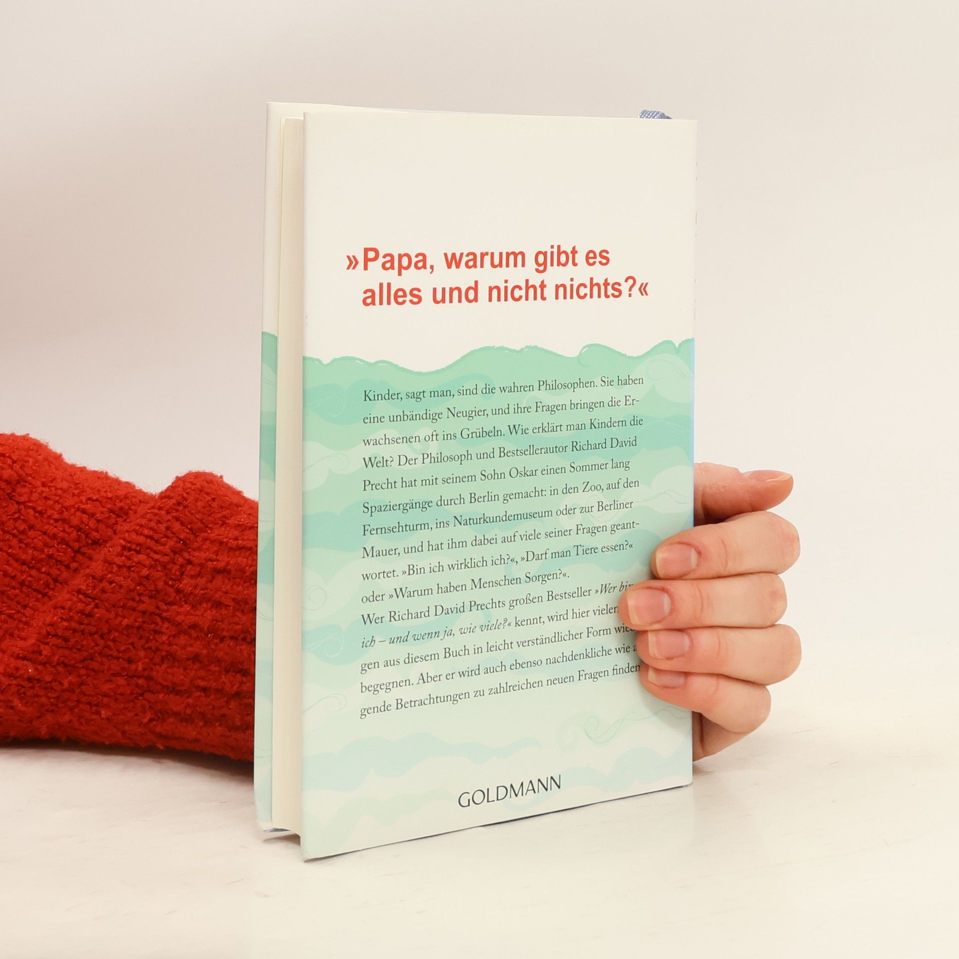 Richard David Precht erklärt seinem Sohn Oskar die Welt Kinder, sagt man, sind die wahren Philosophen. Sie haben eine unbändige Neugier, und ihre Fragen bringen die Erwachsenen oft ins Grübeln. Wie erklärt man Kindern die Welt? Der Philosoph und Bestsellerautor Richard David Precht hat mit seinem Sohn Oskar einen Sommer lang Spaziergänge durch Berlin gemacht: in den Zoo, auf den Fernsehturm, ins Naturkundemuseum oder zur Synagoge, und hat ihm dabei auf viele seiner Fragen geantwortet. „Bin ich wirklich ich?“, „Darf man Tiere essen?“ oder „Warum haben Menschen Sorgen?“. Auf spielerische Art und Weise und mit vielen Geschichten zeigt Precht den Kindern unsere Welt und hilft ihnen, sie besser zu verstehen. Nach „Wer bin ich und wenn ja, wie viele?“ nun das Buch zur Philosophie für alle jungen Menschen, die es genauer wissen wollen!