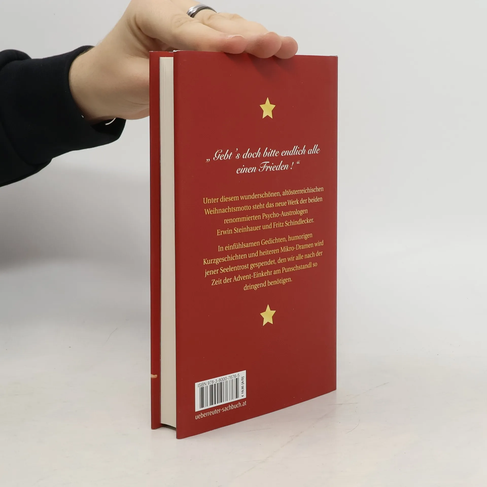 Gebt's doch bitte endlich alle einen Frieden!„ Unter diesem wunderschönen, altösterreichischen Weihnachtsmotto steht das neue Werk der beiden renommierten Psycho-Austrologen Erwin Steinhauer und Fritz Schindlecker. In einfühlsamen Gedichten, humorigen Kurzgeschichten und heiteren Mikro-Dramen wird jener Seelentrost gespendet, den wir alle nach der Zeit der Advent-Einkehr am Punschstandl so dringend benötigen. Nach dem Bestseller “Wir sind super!„, der vielen über die Depression nach der vergeigten Fußball-Europameisterschaft hinweghalf, zaubern nun die “Föhlichen Weihnachterln" ein seliges Kinderlächeln in die wettergegerbten Antlitze heimischer Schi-, Rodel- und SchreibtischathletInnen.