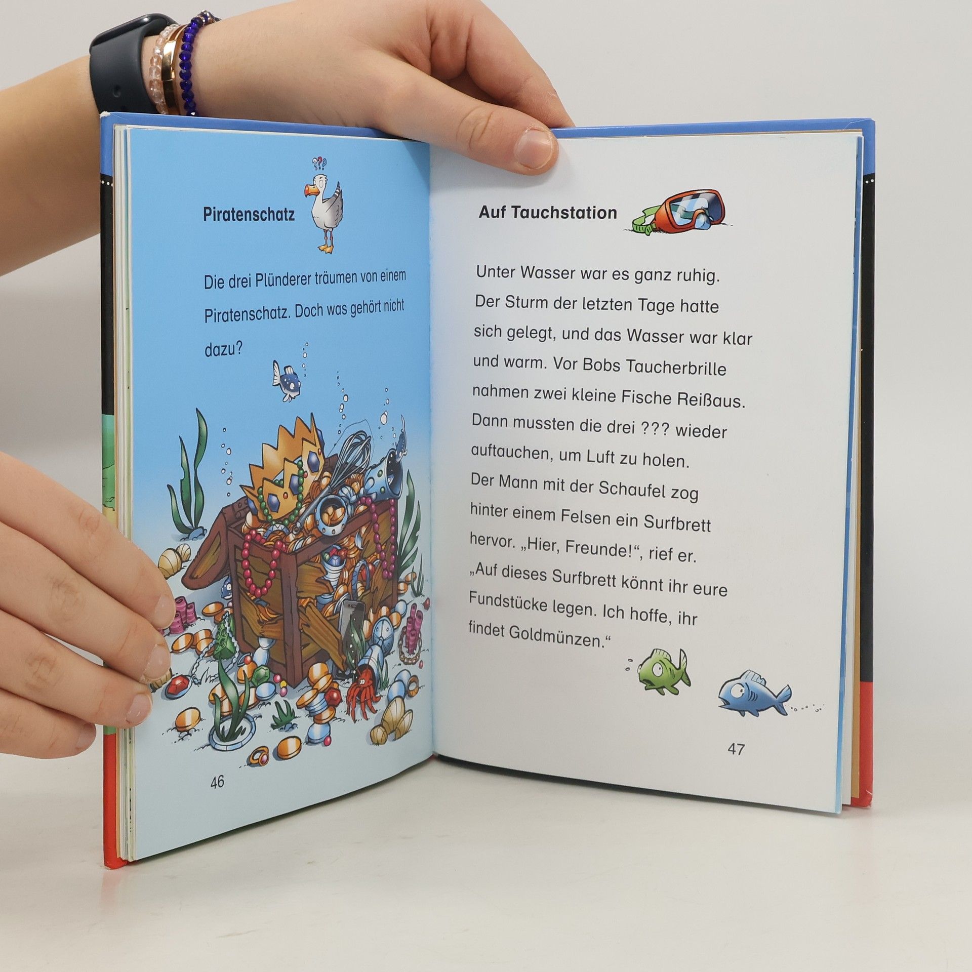 Justus, Peter und Bob sind beste Freunde und Detektive! Zusammen haben die drei ??? schon viele knifflige Fälle gelöst. Ein Fischer schenkt den drei ??? eine geheimnisvolle Holzfigur. Was es damit wohl auf sich hat? Die drei ??? beginnen sofort mit ihren Ermittlungen. Doch da ist ihnen schon eine Gruppe Strandpiraten auf den Fersen ... Lesen lernen ist schwer? Nicht mit dieser spannenden Geschichte, die auch Leseanfänger ab Klassenstufe 2 leicht bewältigen können. Illustrationen und ein Leserätsel am Ende jedes Kapitels machen den Band abwechslungsreich, sorgen für Erfolgserlebnisse und erhöhen die Lesemotivation. So macht der Einstieg ins selbstständige Bücherlesen einfach Spaß.