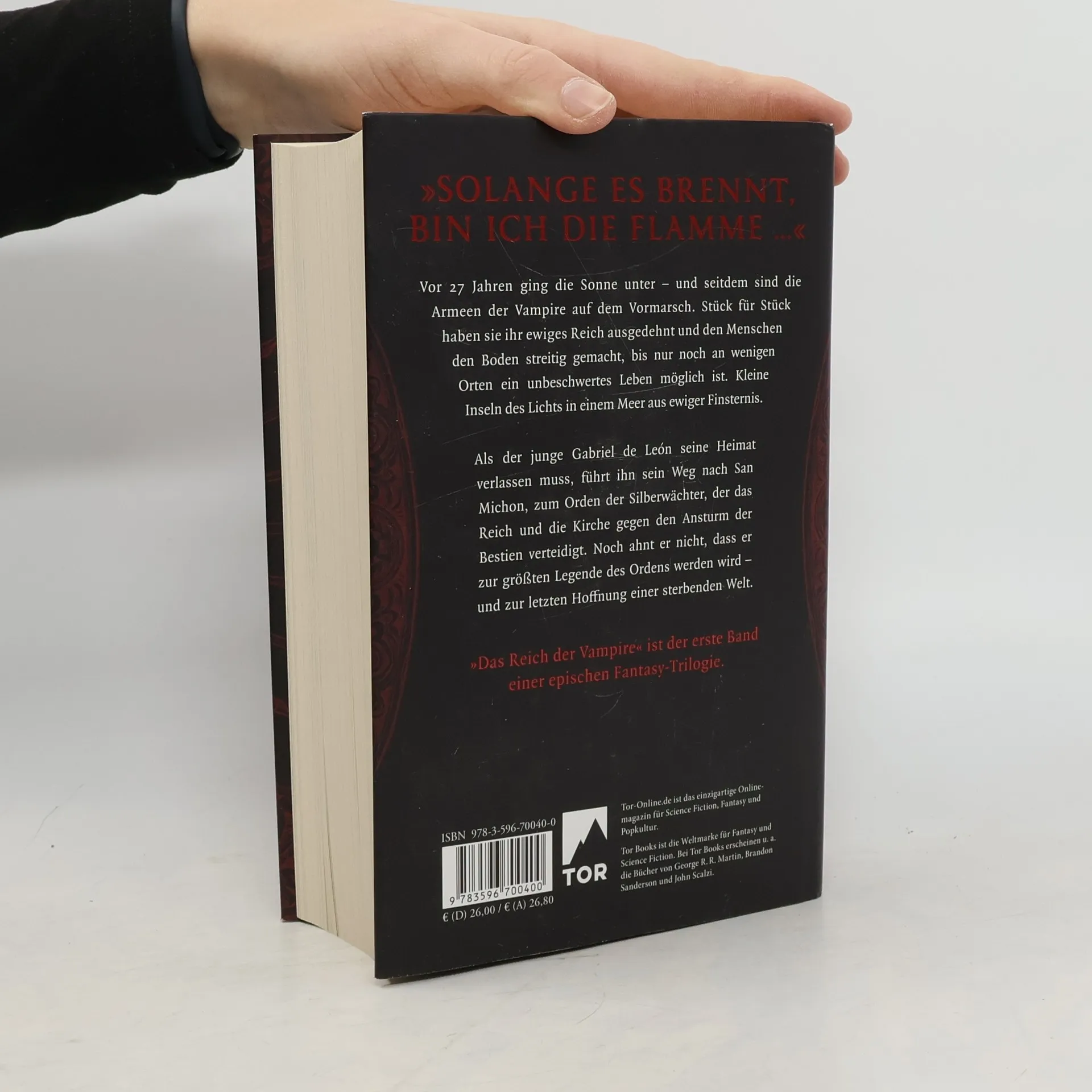 Der „Name des Windes“ meets „Interview mit einem Vampir“ - „Das Reich der Vampire“ ist der Auftaktband der neuen, epischen Fantasy-Serie von Nevernight-Autor Jay Kristoff. Gleich nach Erscheinen stand „Das Reich der Vampire“ auf der New-York-Times- und der Sunday-Times Bestsellerliste.  Vor 27 Jahren ging die Sonne unter – und seitdem sind die Armeen der Vampire auf dem Vormarsch. Stück für Stück haben sie ihr ewiges Reich ausgedehnt und den Menschen den Boden streitig gemacht, bis nur noch an wenigen Orten ein unbeschwertes Leben möglich ist. Kleine Inseln des Lichts in einem Meer aus ewiger Finsternis. Als der junge Gabriel de León sein Heimatdorf verlassen muss, führt ihn sein Weg nach San Michon, zum Orden der Silberwächter, einer heiligen Bruderschaft, die das Reich und die Kirche gegen den Ansturm der Bestien verteidigt. Und noch ahnt er nicht, dass er zur größten Legende des Ordens werden wird – und zur letzten Hoffnung einer sterbenden Welt.   Tolle Ausstattung: Hardcover im Schutzumschlag mit zahlreichen Illustrationen von Bon Orthwick und zwei farbigen Vorsatzkarten.  Für Leser*innen von Sarah J. Maas, V. E. Schwab, Leigh Bardugo und Fans von Vampire – The Masquerade oder Castlevania und The Last of Us.