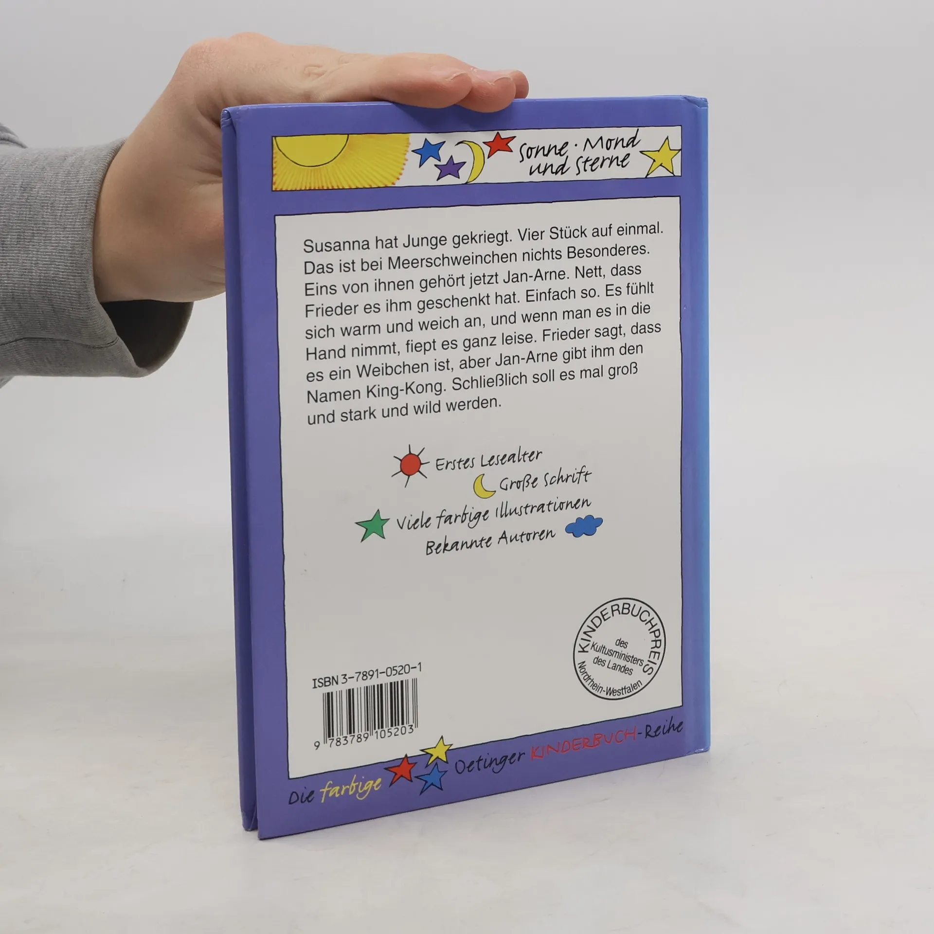 Susanna hat Junge gekriegt. Vier Stück auf einmal. Das ist bei Meerschweinchen nichts Besonderes. Eins von ihnen gehört jetzt Jan-Arne. Nett, dass Frieder es ihm geschenkt hat. Einfach so. Es fühlt sich warm und weich an, und wenn man es in die Hand nimmt, fiept es ganz leise. Frieder sagt, dass es ein Weibchen ist, aber Jan-Arne gibt ihm den Namen King-Kong. Schließlich soll es mal groß und stark und wild werden. Lesen lernen mit "Büchersterne" für die 2./3. Klasse: einfacher Satzbau, fortgeschrittenes Textniveau und ein höherer Textanteil, der die Lesefähigkeit geübter Leseanfänger fördert. Dazu ein Leserätsel im Anhang.