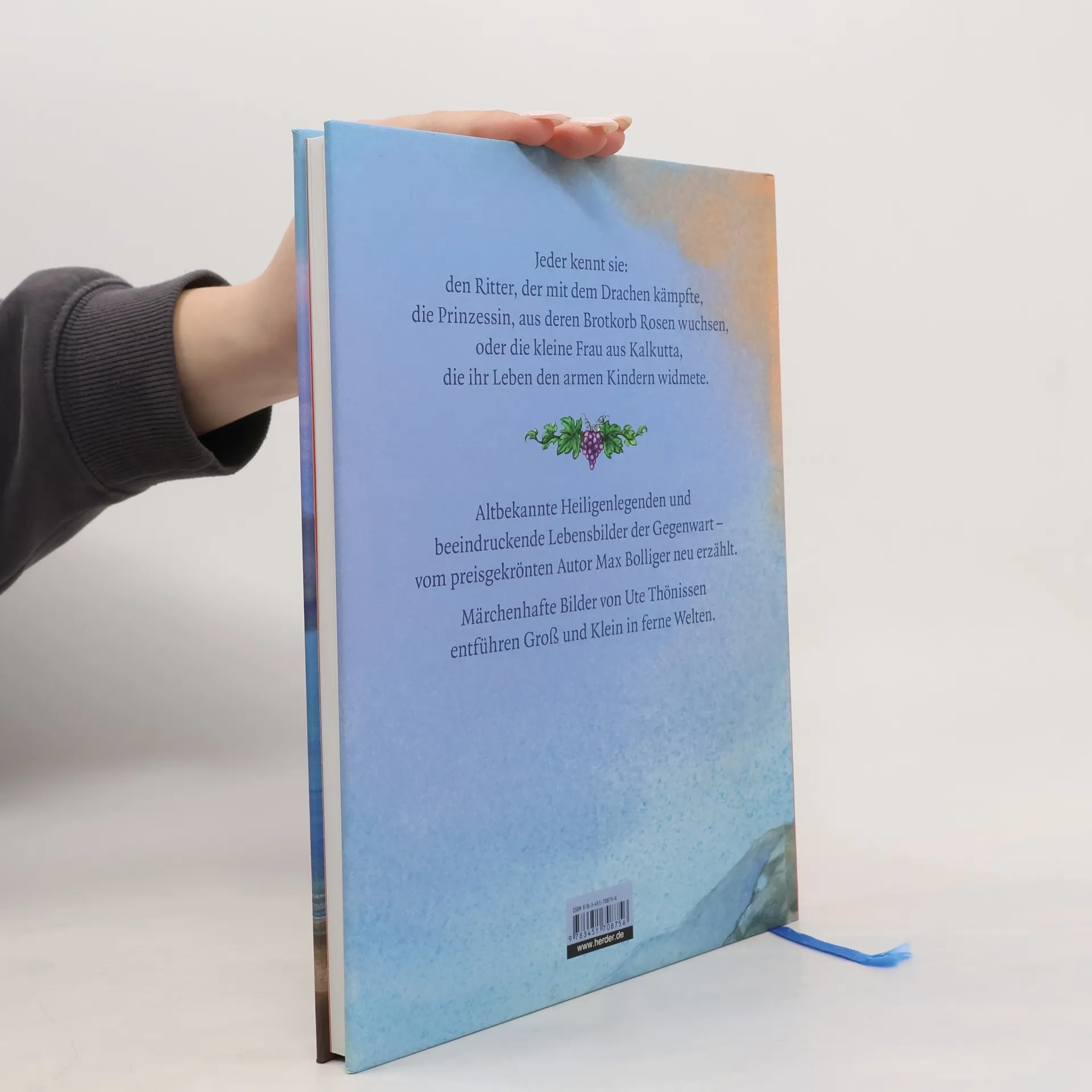 Jeder kennt sie: den Ritter, der mit dem Drachen kämpfte, die Prinzessin, aus deren Brotkorb Rosen wuchsen oder die kleine Frau aus Kalkutta, die ihr Leben den armen Kindern widmete. Altbekannte Legenden sowie beeindruckende Lebensgeschichten der Gegenwart werden von Max Bolliger für Kinder neu erzählt. Märchenhafte Bilder der erfolgreichen Illustratorin Ute Thönissen entführen die Betrachter in fremde Welten. Ein wunderbares Geschenk.