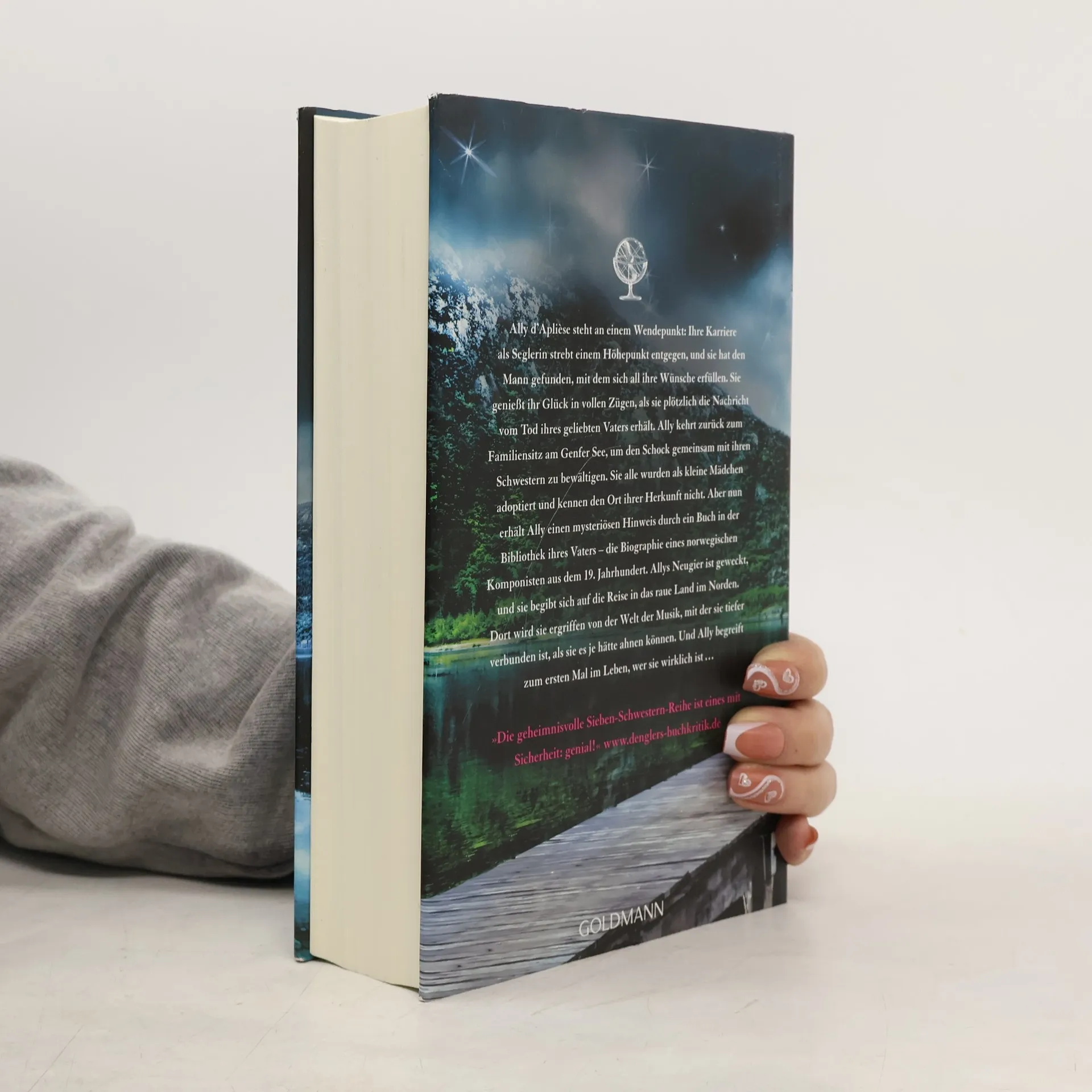 Ally d’Aplièse steht an einem Wendepunkt: Ihre Karriere als Seglerin strebt einem Höhepunkt entgegen, und sie hat den Mann gefunden, mit dem sich all ihre Wünsche erfüllen. Da erhält sie völlig unerwartet die Nachricht vom Tod ihres geliebten Vaters. Ally kehrt zurück zum Familiensitz am Genfer See, um den Schock gemeinsam mit ihren Schwestern zu bewältigen. Sie alle wurden als kleine Mädchen adoptiert und kennen den Ort ihrer Herkunft nicht. Aber nun erhält Ally einen mysteriösen Hinweis durch ein Buch in der Bibliothek ihres Vaters – die Biographie eines norwegischen Komponisten aus dem 19. Jahrhundert. Allys Neugier ist geweckt, und sie begibt sich auf die Reise in das raue Land im Norden. Dort wird sie ergriffen von der Welt der Musik, mit der sie tiefer verbundener ist, als sie es je hätte ahnen können. Und Ally begreift zum ersten Mal im Leben, wer sie wirklich ist ... Der zweite Band aus der Bestseller-Serie um die sieben Schwestern.