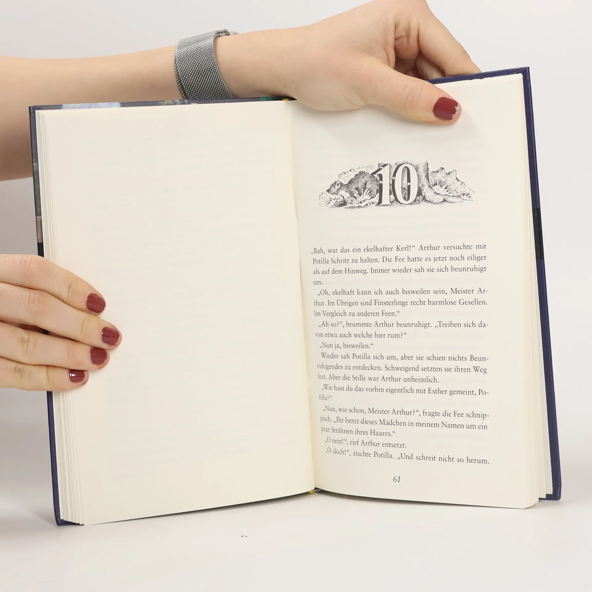 Arthur traut seinen Augen nicht. In dem schmutzigen Strumpf, den er im Wald gefunden hat, steckt jemand Lebendiges! Potilla, die Feenkönigin, ist nur puppengroß und elfenzart, doch als sie wieder bei Sinnen ist, hat sie sogleich einen Auftrag für Arthur. Ihr Volk ist überfallen worden und der Dieb hat sämtliche Feenmützen gestohlen. Jetzt können die Feen nicht in ihr Reich zurück. Arthur soll ihr helfen, die Mützen wieder zurückzuholen, und von nun an hat er keine ruhige Minute mehr …