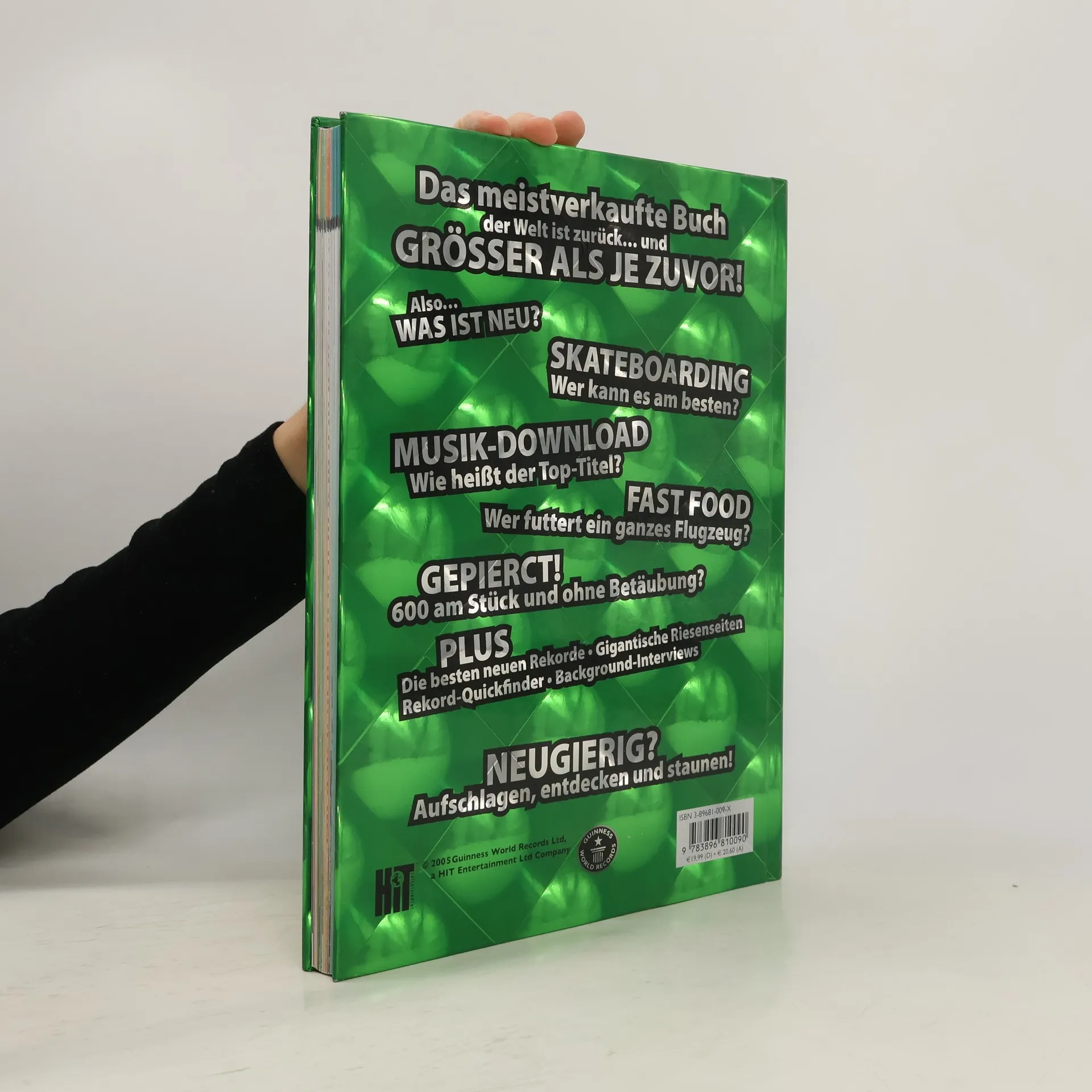 §Skateboarding! Wer kann es am besten?§Musik-Download! Wie heißt der Top-Titel?§Fast Food! Wer futtert ein ganzes Flugzeug?§Gepierct! 600 am Stück und ohne Betäubung?§Plus: Die besten neuen Rekorde. Gigantische Riesenseiten. Rekord-Quickfinder. Background-Interviews.§Neugierig? Aufschlagen, entdecken und staunen!
