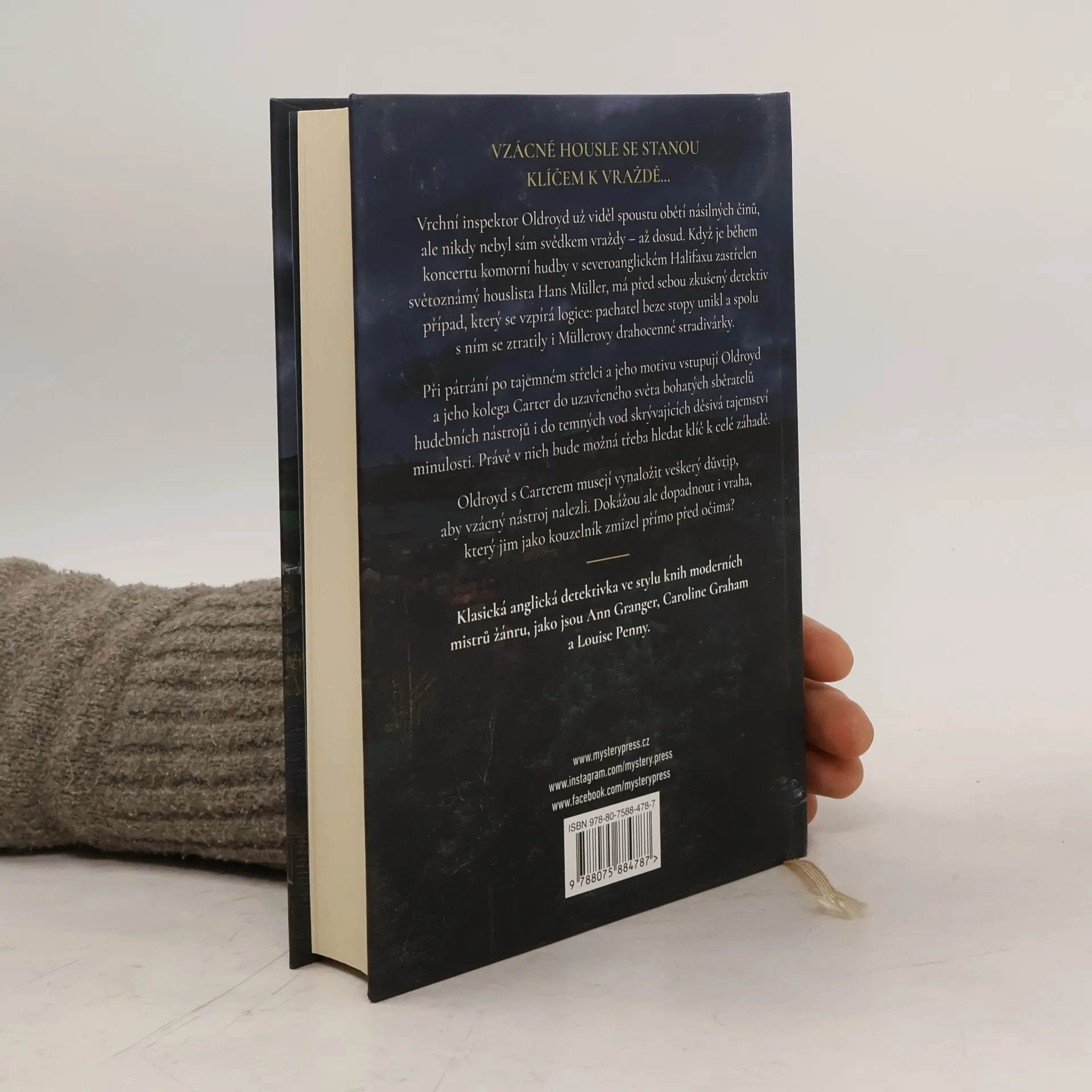 VZÁCNÉ HOUSLE SE STANOU KLÍČEM K VRAŽDĚ…Vrchní inspektor Oldroyd už viděl spoustu obětí násilných činů, ale nikdy nebyl sám svědkem vraždy – až dosud. Když je během koncertu komorní hudby v severoanglickém Halifaxu zastřelen světoznámý houslista Hans Müller, má před sebou zkušený detektiv případ, který se vzpírá logice: pachatel beze stopy unikl a spolu s ním se ztratily i Müllerovy drahocenné stradivárky.Při pátrání po tajemném střelci a jeho motivu vstupují Oldroyd a jeho kolega Carter do uzavřeného světa bohatých sběratelů hudebních nástrojů i do temných vod skrývajících děsivá tajemství minulosti. Právě v nich bude možná třeba hledat klíč k celé záhadě. Oldroyd s Carterem musejí vynaložit veškerý důvtip, aby vzácný nástroj nalezli. Dokážou ale dopadnout i vraha, který jim jako kouzelník zmizel přímo před očima?____Klasická anglická detektivka ve stylu knih moderních mistrů žánru, jako jsou Ann Granger, Caroline Graham a Louise Penny.