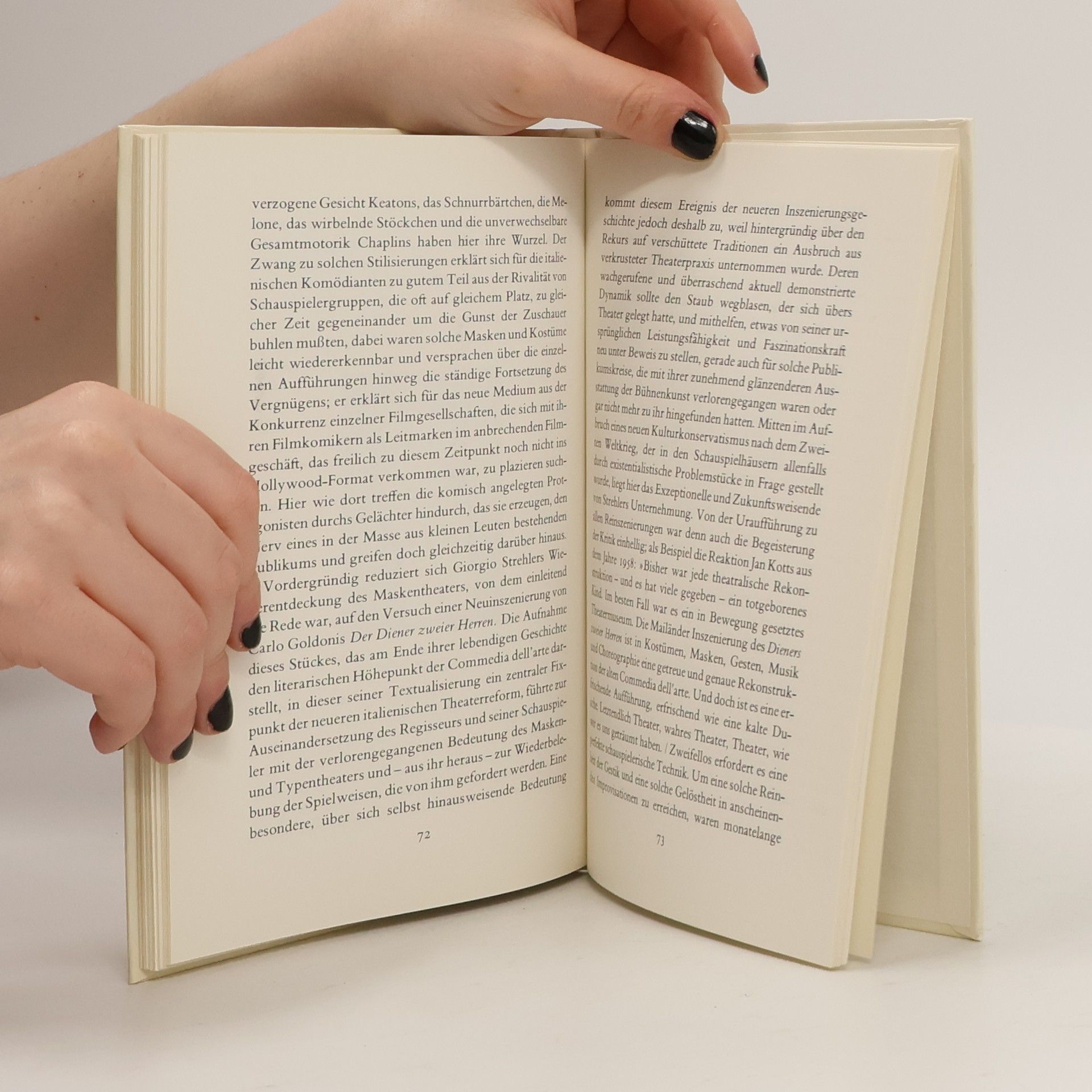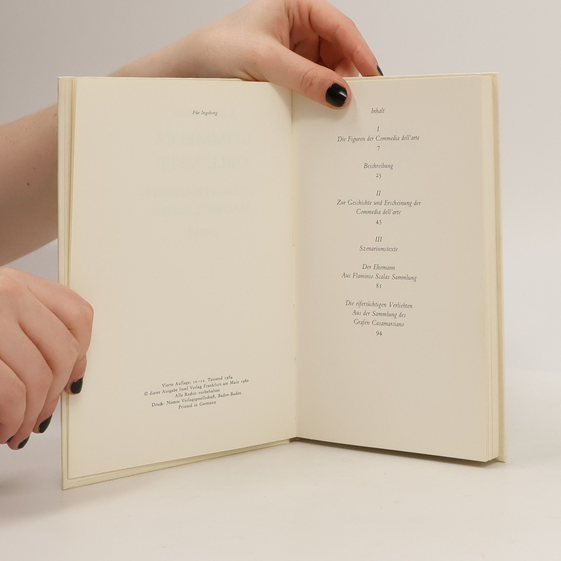 Mit farbigen Abbildungen der Figurinen der Commedia dell'arte werden Erscheinungsbild und Inhalte des italienischen Volkstheaters des 16. und 17. Jahrhunderts anschaulich dargestellt. Die Figurinen stammen von Maurice Sand, dem Sohn der Schriftstellerin George Sand.