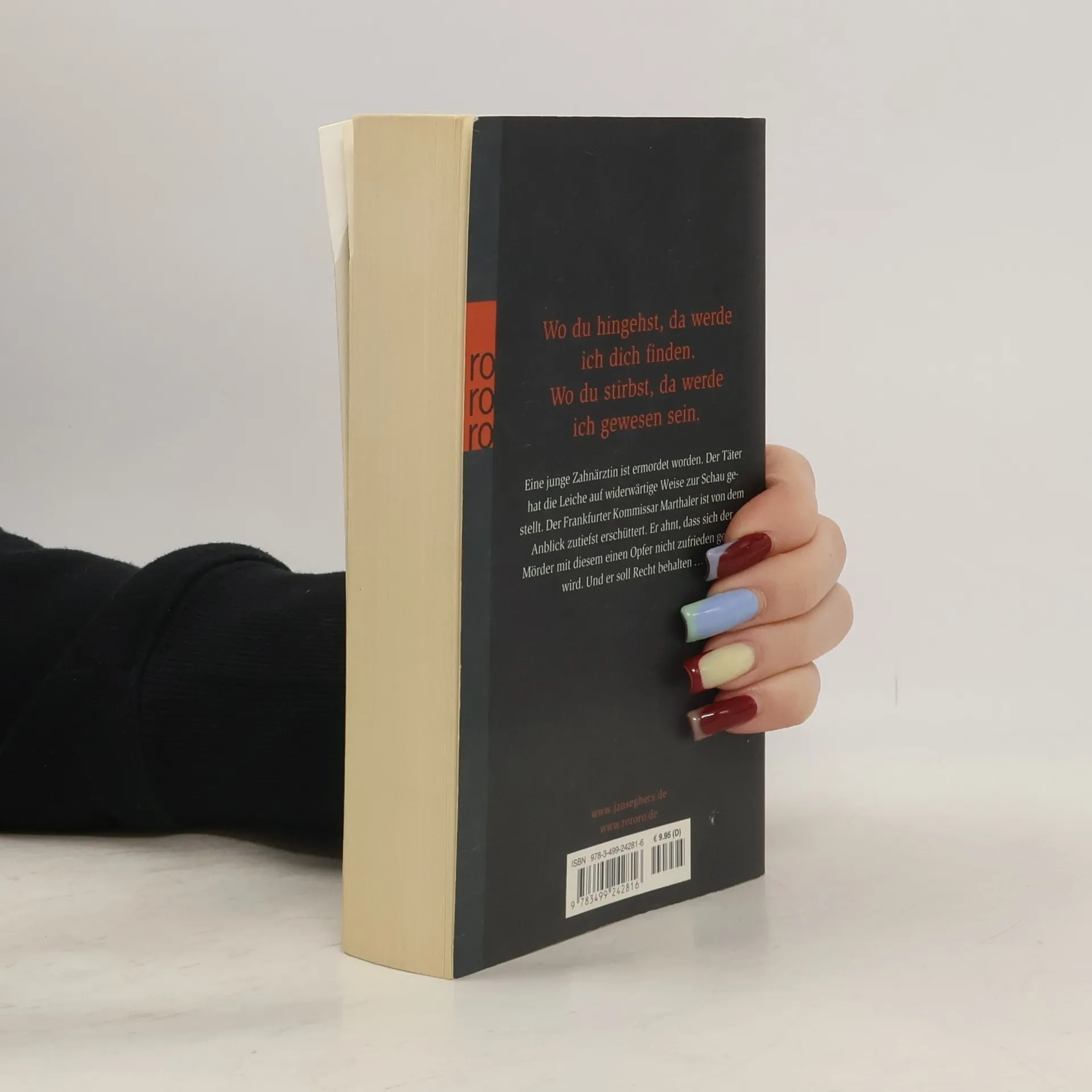 Wo du hingehst, da werde ich dich finden. Wo du stirbst, da werde ich gewesen sein.Eine junge Zahnärztin ist ermordet worden. Der Täter hat die Leiche auf widerwärtige Weise zur Schau gestellt. Der Frankfurter Kommissar Marthaler ist von dem Anblick zutiefst erschüttert. Er ahnt, dass sich der Mörder mit diesem einen Opfer nicht zufrieden geben wird.Und er soll Recht behalten ...www. janseghers. de