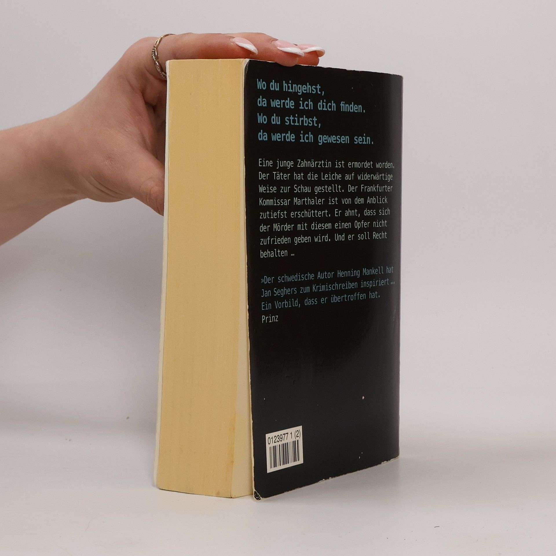 Wo du hingehst, da werde ich dich finden. Wo du stirbst, da werde ich gewesen sein.Eine junge Zahnärztin ist ermordet worden. Der Täter hat die Leiche auf widerwärtige Weise zur Schau gestellt. Der Frankfurter Kommissar Marthaler ist von dem Anblick zutiefst erschüttert. Er ahnt, dass sich der Mörder mit diesem einen Opfer nicht zufrieden geben wird. Und er soll Recht behalten …www. janseghers. de