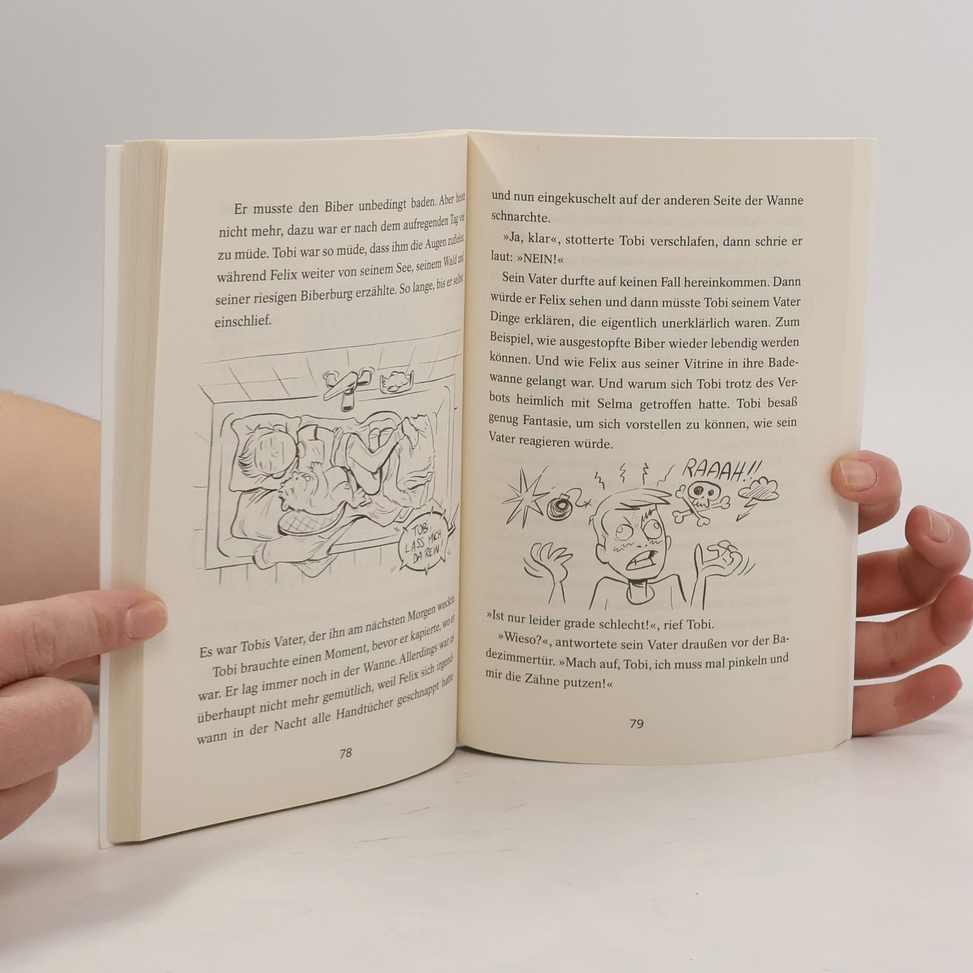 Wie versteckt man einen Biber? Selma und Tobi sind gerne in der Schule. Zumindest nachmittags, wenn sie das Gebäude ganz für sich alleine haben. Manchmal ist es eben gar nicht so schlecht, wenn die Mama Schuldirektorin ist oder der Papa Hausmeister. Als die Freunde ein bisschen im Chemieraum herumexperimentieren und es zu einer ordentlichen Explosion kommt, passiert etwas Außergewöhnliches: Der ausgestopfte Biber in der alten Vitrine erwacht zum Leben! Felix heißt der verfressene Kerl, und er hat seit seiner Präparation hundert Jahre verschlafen! Vor allem aber hat er schreckliches Heimweh nach dem See, von dem er kommt. Für die Freunde beginnt eine abenteuerliche Reise, denn sie haben dem kleinen Nager versprochen, ihn zurück nach Hause zu bringen – großes Biberehrenwort! Ausstattung: Mit s/w Illustrationen
