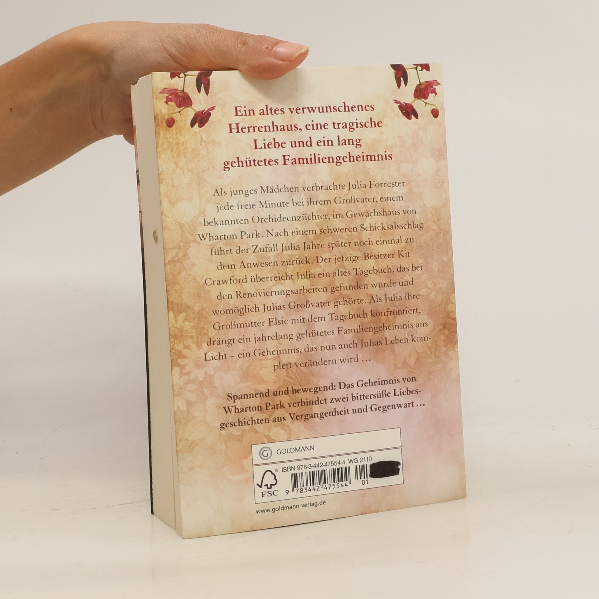 Jedes Haus hat sein Geheimnis. Und jede Liebe ihren Preis Als junges Mädchen verbrachte Julia Forrester jede freie Minute bei ihrem Großvater, einem bekannten Orchideenzüchter, im Gewächshaus von Wharton Park. Nach einem schweren Schicksalsschlag führt der Zufall Julia Jahre später noch einmal zu dem Anwesen zurück. Der jetzige Besitzer Kit Crawford überreicht ihr ein altes Tagebuch, das bei den Renovierungsarbeiten gefunden wurde und womöglich Julias Großvater gehörte. Als Julia ihre Großmutter Elsie mit dem Tagebuch konfrontiert, drängt ein jahrelang gehütetes Familiengeheimnis ans Licht, das auch Julias Leben komplett verändern wird …